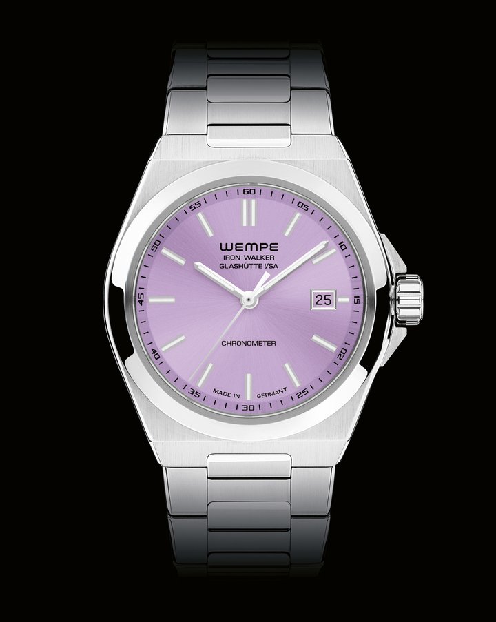 Wempe named one of its main watch lines Iron Walker in homage to the daring construction workers who built the steel skeletons of the first New York skyscrapers at dizzying heights. The German house is now introducing a series of new models in 36 and 40 mm diameters, with a choice of “Playful Apricot”, “Refined Lavender” or “Elegant Petrol” dials. They all feature a robust stainless-steel case with an integrated bracelet.