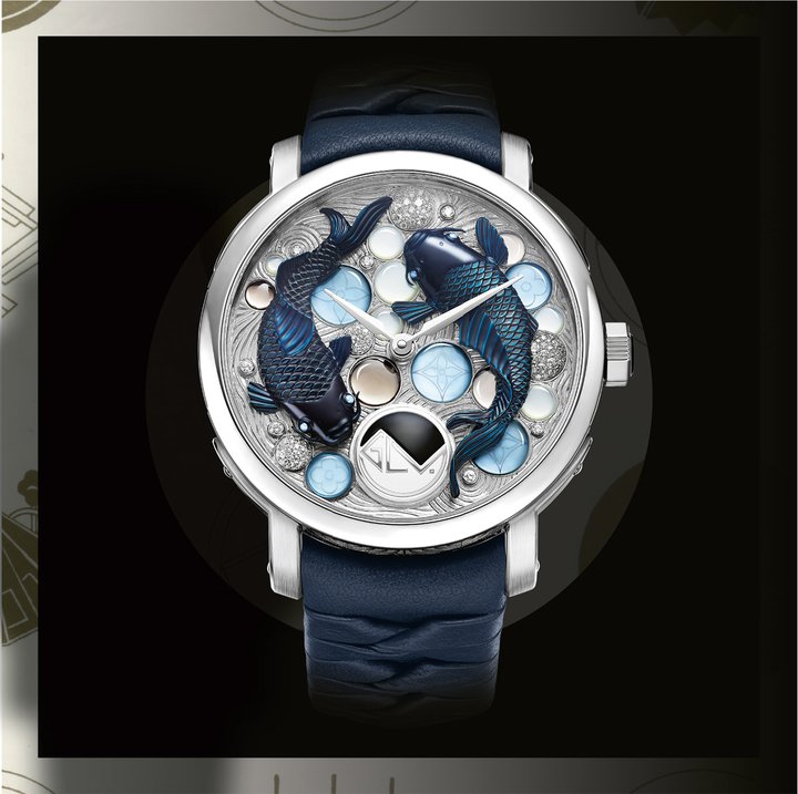 Koï’s Garden from Louis Vuitton combines hand engraving and miniature painting to capture a classical view of the Japanese garden fish.