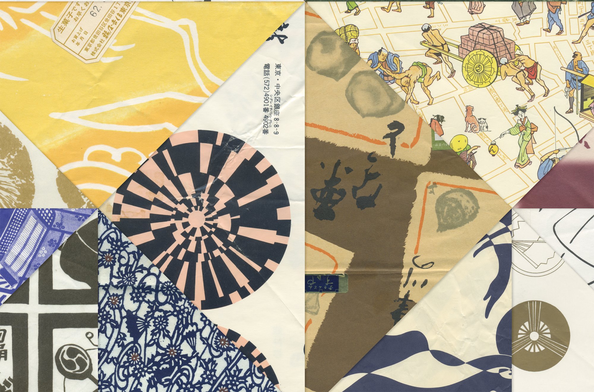 Since the 1960s, Susanne Rambach, a painter and designer born in Paris in 1932, has been collecting wrapping papers from Japan. These ephemeral masterpieces, destined to be thrown away after use, nevertheless bear witness to an everyday graphic art of great beauty and rare sensitivity. These decorative papers bear witness to the meticulous attention paid to wrapping, thanks to which every item, no matter how trivial, is treated with dignity. It’s a lesson in civilisation.