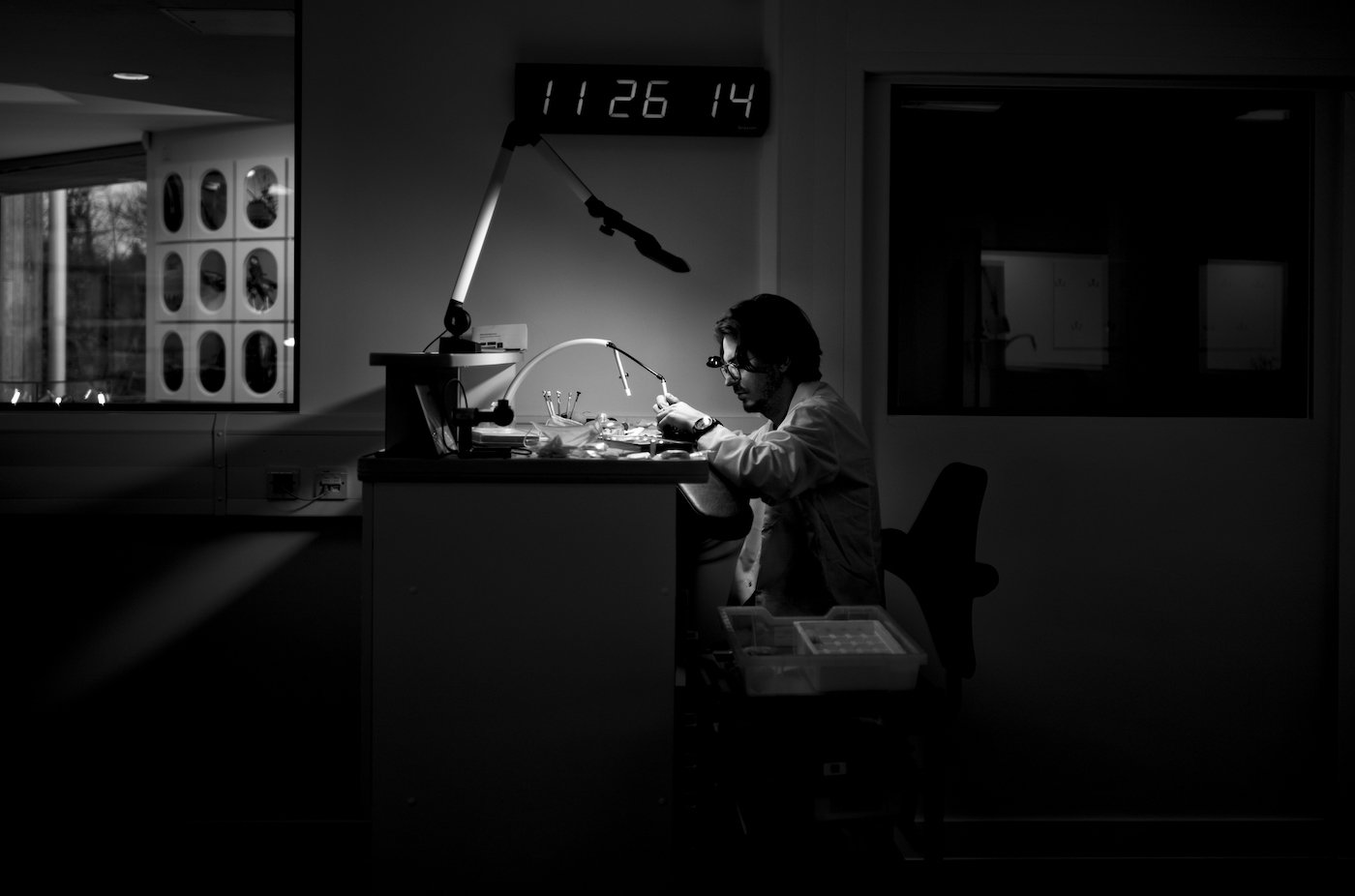 Unlike a small atelier producing limited numbers, making watches en masse is a complex process requiring in-depth analysis and vigorous testing at every level prior to execution. “One of the things that is possibly the most difficult to comprehend is the sheer scale and volume of sub-assemblies that go into a movement assembly,” Reynolds explains. “There are countless numbers of sub-sub-assemblies where you’re pressing together gears or wheels or bearings with spring-loaded kind of pinions. These are tiny, tiny parts. Their alignment, the tension, and not damaging the parts when you’re doing it are crucial. And if you’re slightly out in any way, it will result in a watch which does not keep good time. So, we’re chasing the microns through the movement to result in nanoseconds of accuracy.”