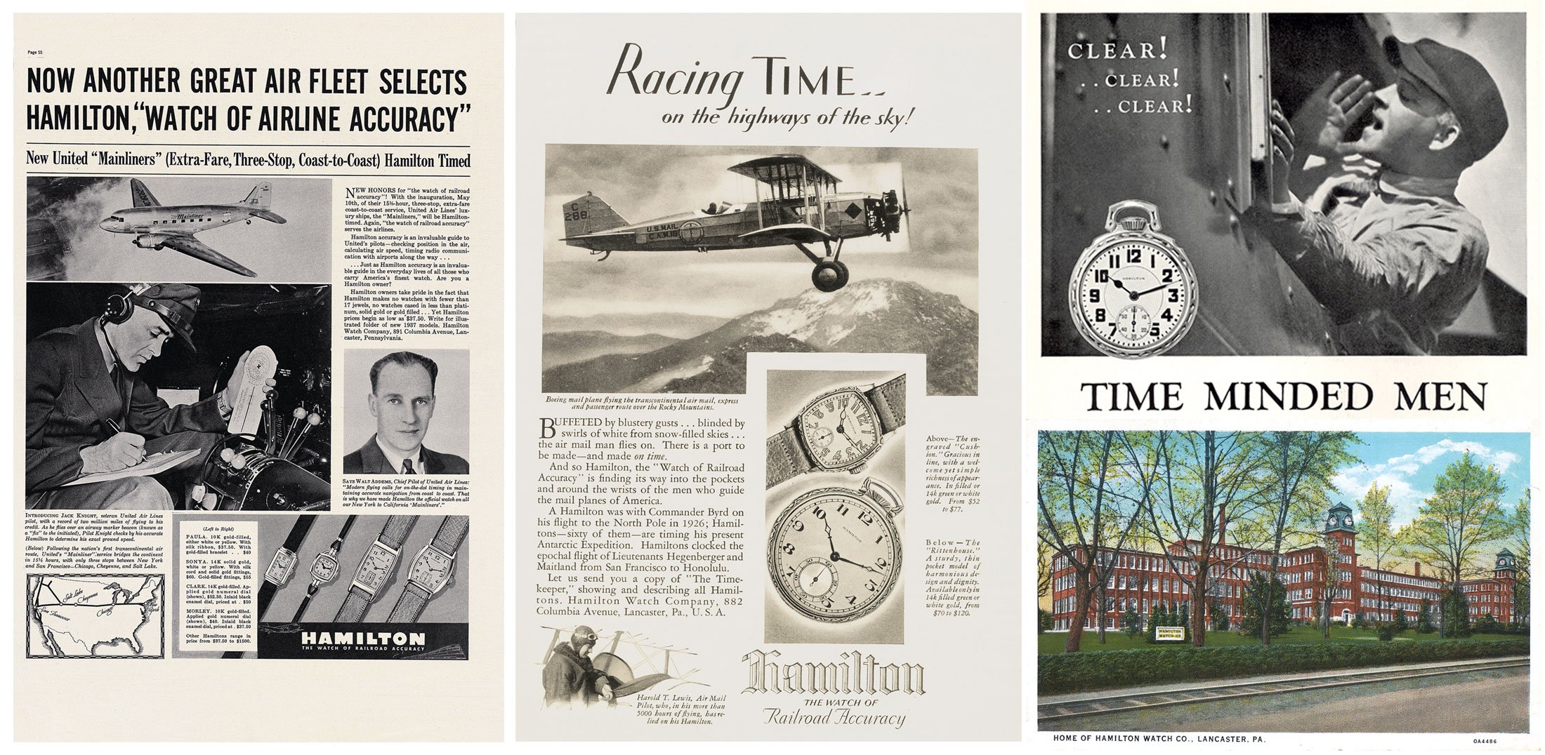 Hamilton, still known to the general public but now under a Swiss flag, was founded in 1892 in Lancaster, Pennsylvania. Its history is linked to the advance of the railway in the United States: in the 1920s, more than half of Hamilton’s production was devoted to watches for railway employees. But it also accompanied the rise of the American army: GIs wore Hamilton timepieces during the D-Day landings. The Second World War saw the Lancaster firm produce one million chronographs for the needs of the army. American watch factories were operating at full capacity at the time...