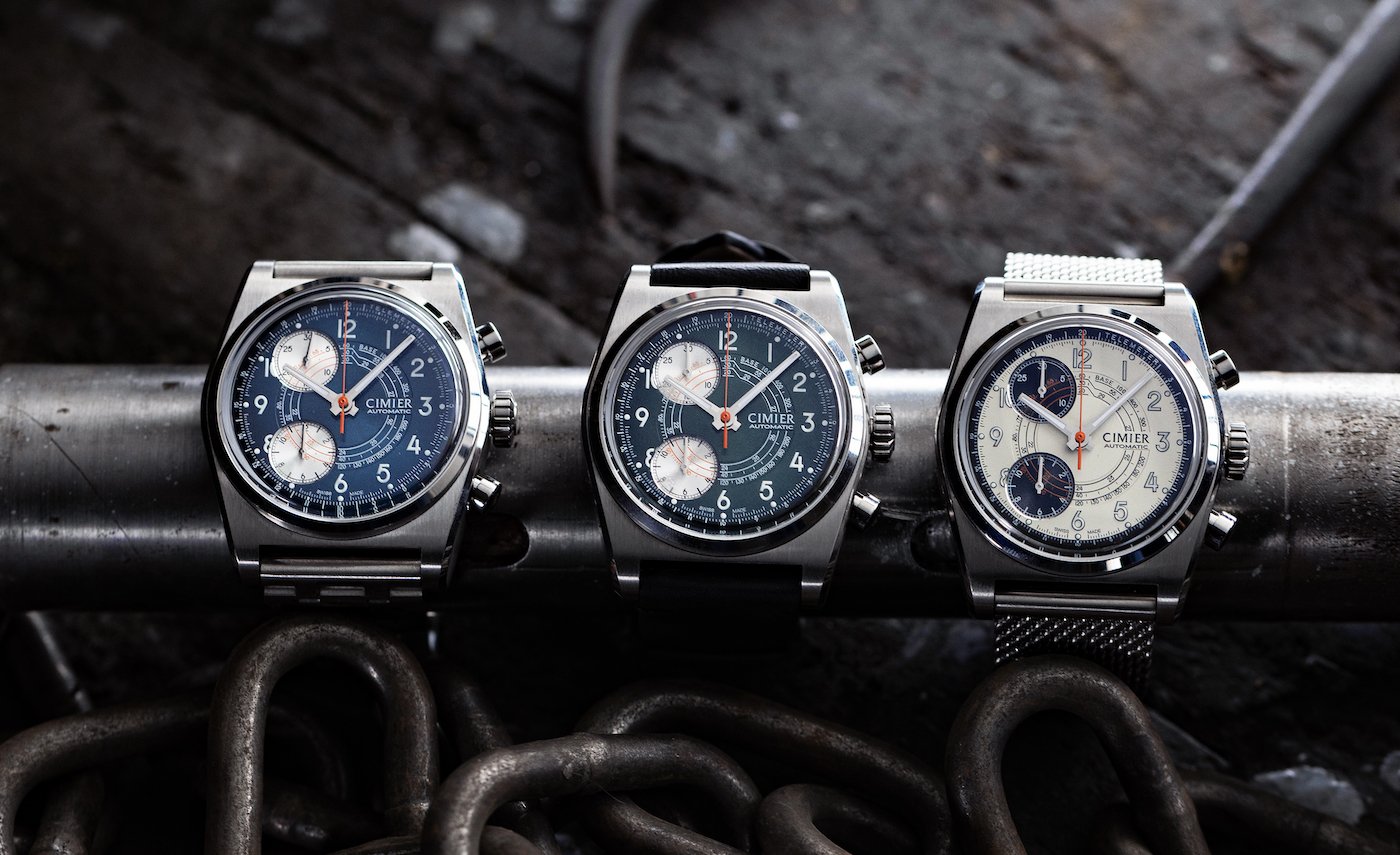 Cimier celebrated a century of watchmaking with the unveiling of the 711 Heritage Chronograph. This model, revealed at an exclusive 100th anniversary breakfast, incorporates an innovative layout with chronograph counters positioned at 11 and 7 o’clock, reminiscent of the brand’s 1960s “Cimier Sport” designs. It also features a telemetric scale on the outer edge and a tachymetric scale at the center, offering a blend of vintage appeal and modern functionality.