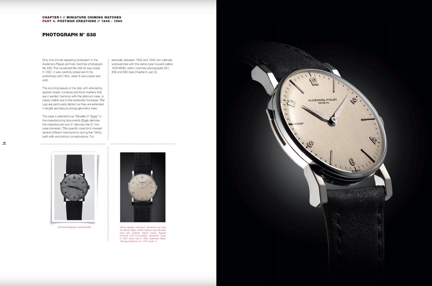 According to Audemars Piguet’s “bible” of complicated wristwatches, as dubbed by Fondation de la Haute Horlogerie Journal, during the post World War II boom years of the late 1940s – 1960s, the watchmaker entered a “Golden Age” of creative and technical watch design. Just as the War came to an end in 1945, they sold this unique platinum minute repeater wristwatch with a contemporary design language consistent throughout.