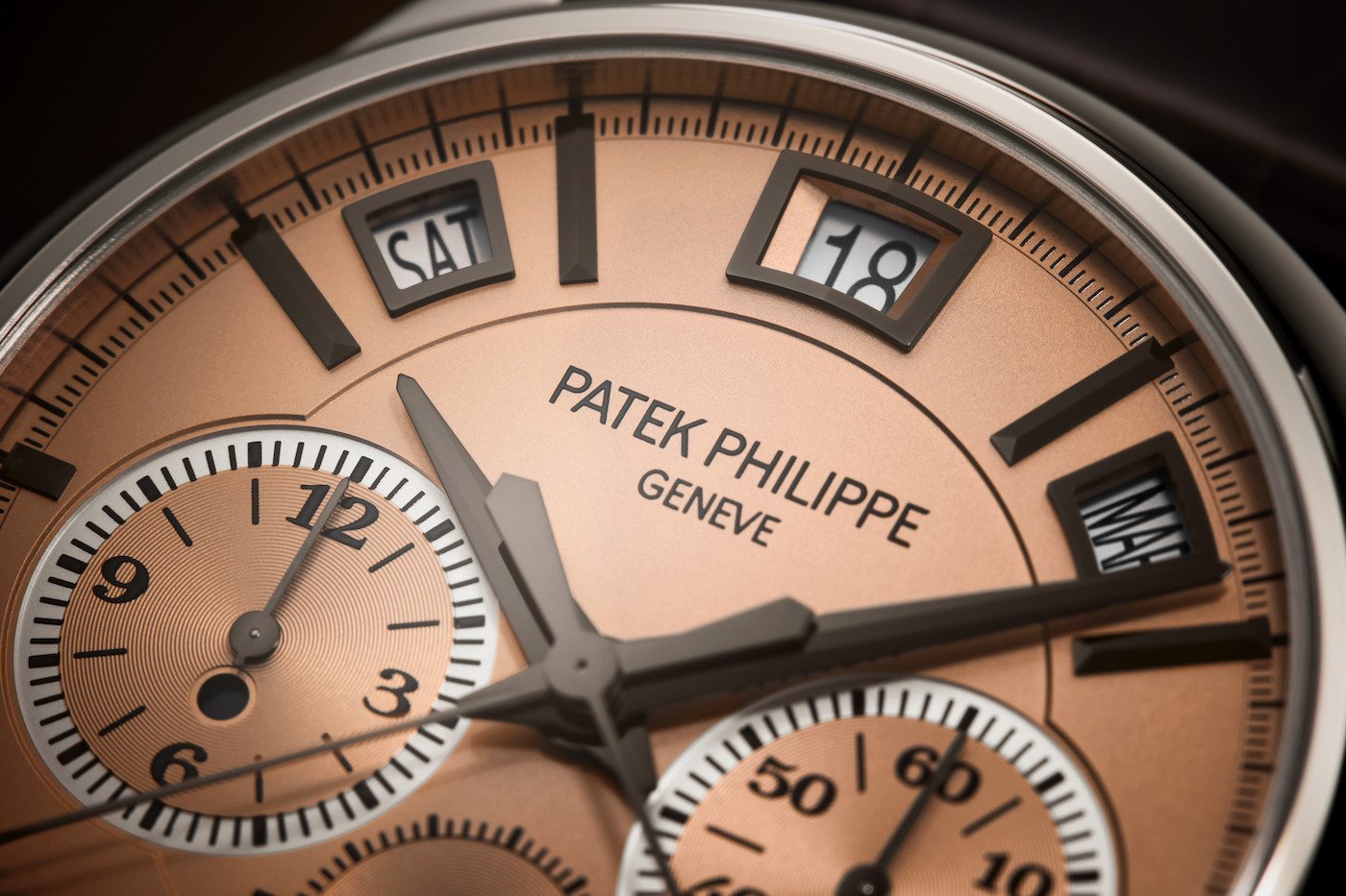 The new self-winding Reference 5308P-010 unites a minute repeater, a split-seconds chronograph equipped with two new patented mechanisms and an instantaneous perpetual calendar in apertures. A true feat of miniaturization and energy management, this Quadruple Complication, housing a new caliber R CHR 27 PS QI movement with optimized performances, greets the world in an elegant platinum case with pierced lugs, framing a dial in rose-gilt opaline.