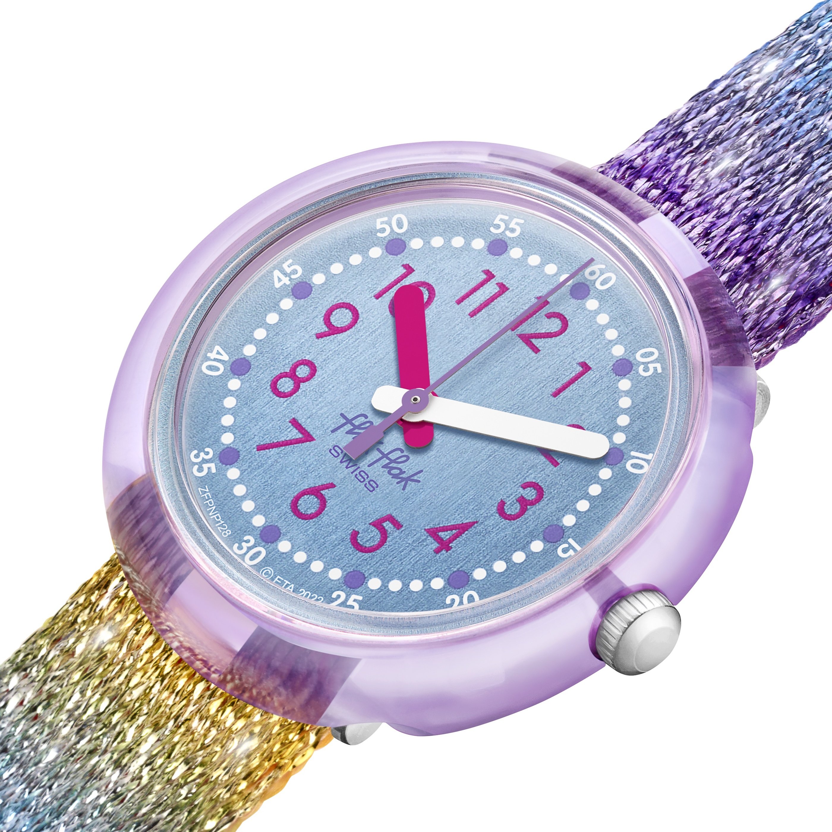 - Flik Flak’s ’Power Time’ three-hand watches cater to older kids’ needs and style preferences. The colour-coded dials and hands match the hour and minute markers to promote intuitive learning.