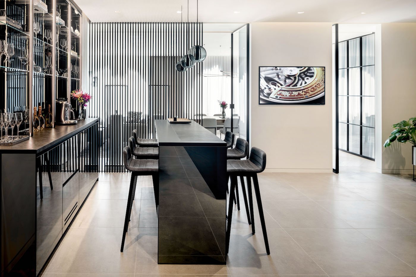 The Salon also features a Lange “Experience Library”, a fixture in A. Lange & Söhne boutiques worldwide that tells the brand’s story through a set of carefully selected exhibits and artefacts. Furthermore, in a private viewing area, a media room featuring a 98” high-definition home theatre enables guests to examine – on demand and in intricate detail – the technical sophistication of selected Lange movements.