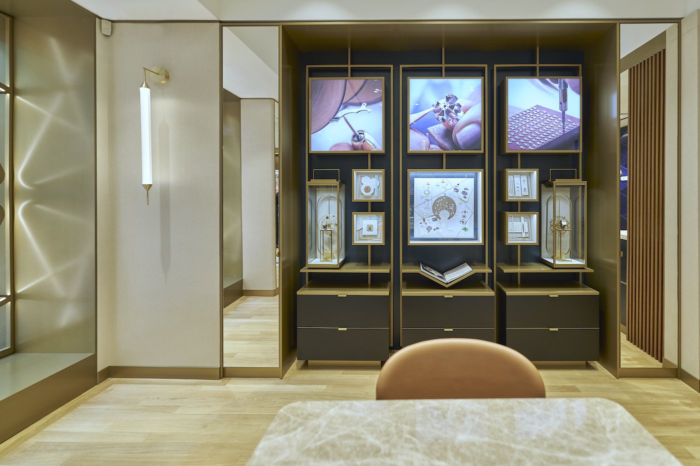 To enhance the appreciation of Vacheron Constantin’s unique craftsmanship, the boutique proudly showcases a captivating “Watchmaking Wall”. Positioned in an exclusive section, this wall epitomises the meticulous attention to detail and exquisite finishes that define Vacheron Constantin timepieces. Reflecting the maison’s unwavering commitment to the Hallmark of Geneva since 1801, this feature serves as a testament to the brand’s heritage and dedication to excellence. Visitors will gain a deep appreciation for each stage of crafting the maison’s calibres and they will witness the meticulous finishing processes, including polishing, straightening, chamfering, centring, and flattening, among over 30 other crafts.