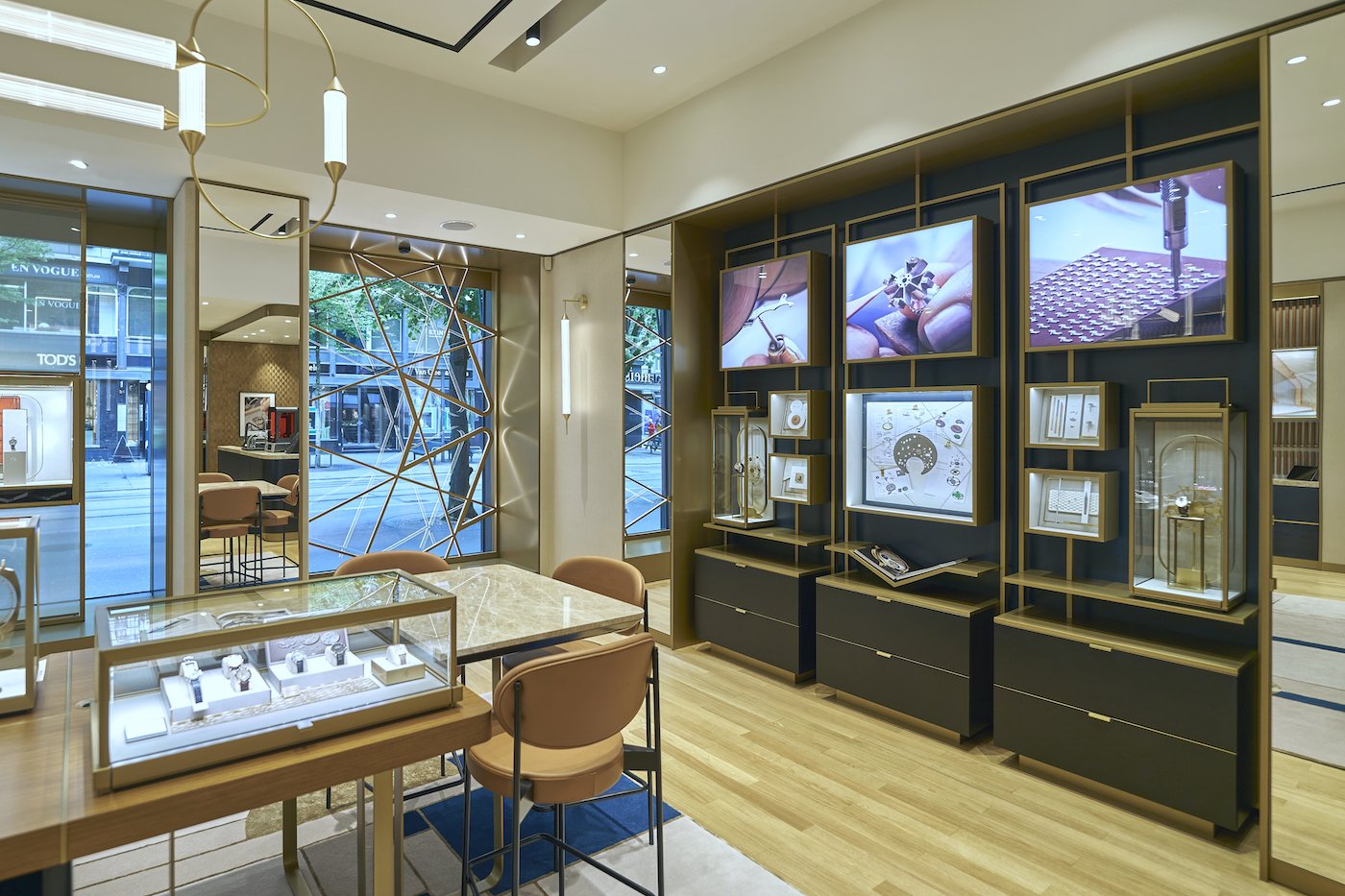 Spanning over 100 square meters, the boutique is inspired by the refined design aesthetic of the maison in the heart of Geneva. The exterior features a unique façade inspired by Vacheron Constantin’s Maltese cross emblem, and the interior is exuding an intimate and warm environment for watch enthusiasts and collectors to be greeted with personal attention. This new boutique invites clients to immerse themselves into the culture, history, and excellence that define the maison.