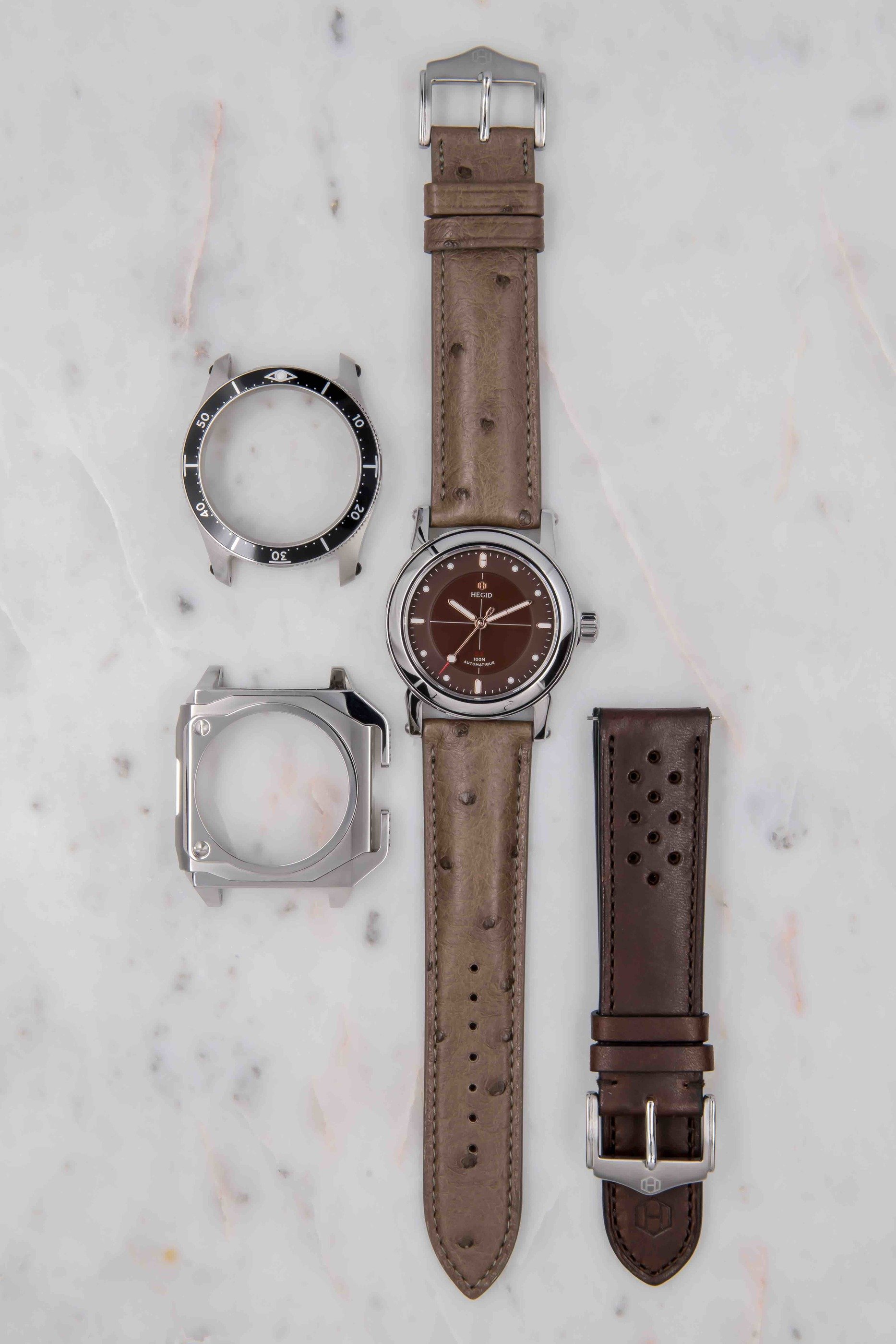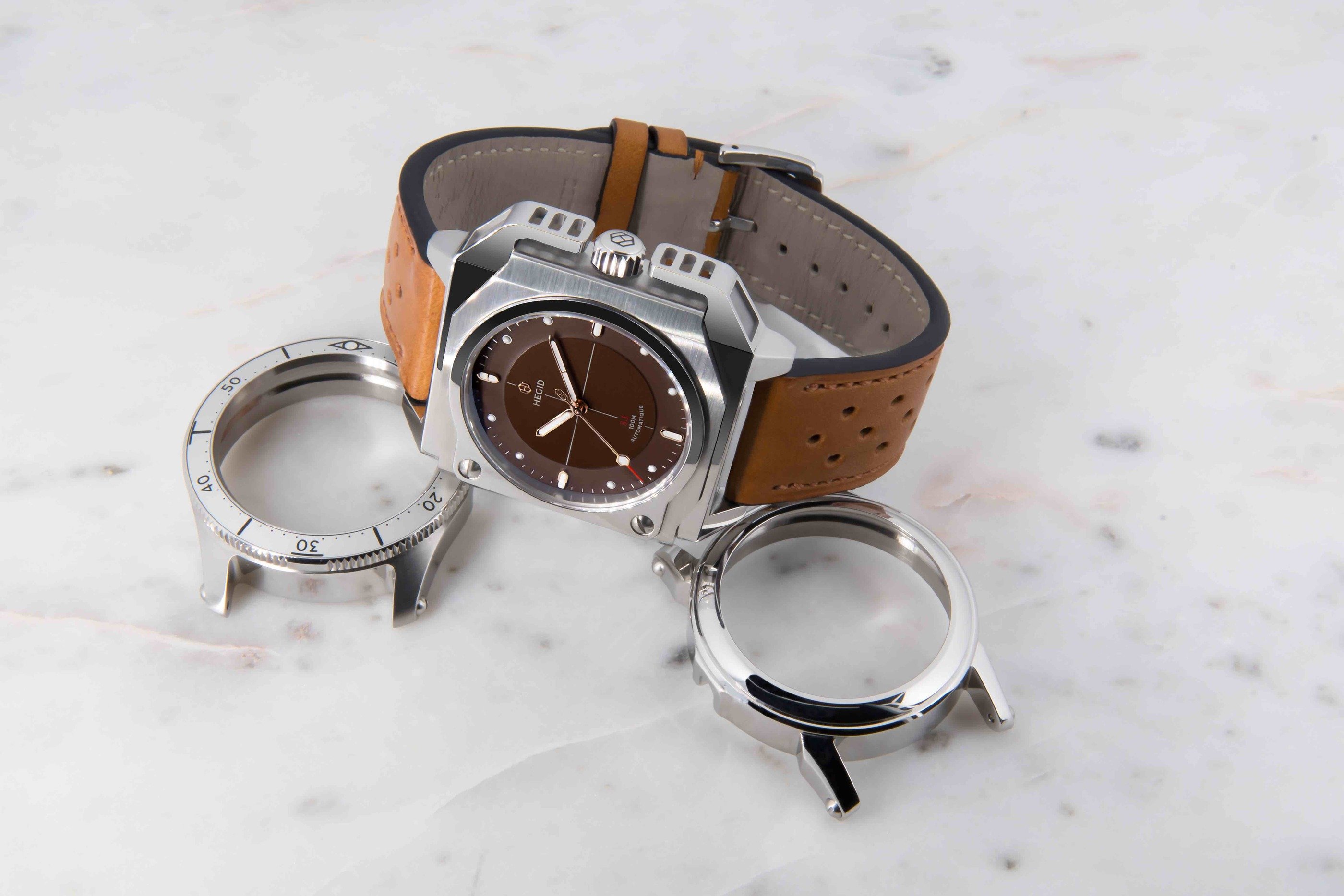 “We want to reinvent the notion of watchmaking heritage,” says cofounder Henrick Gauché, who worked during more than a decade for major Swiss brands. “For the first time, a watch complication is located... outside of the watch itself! In 20 seconds, you can switch from the adventurer’s watch to the dress watch. Over time, each owner of a Hegid timepiece will build the watch that matches 100% his personality. I like the idea that we all want to be different. But an important part of the project is to achieve this flexibility while meeting the tech requirements of true quality timekeeping.”