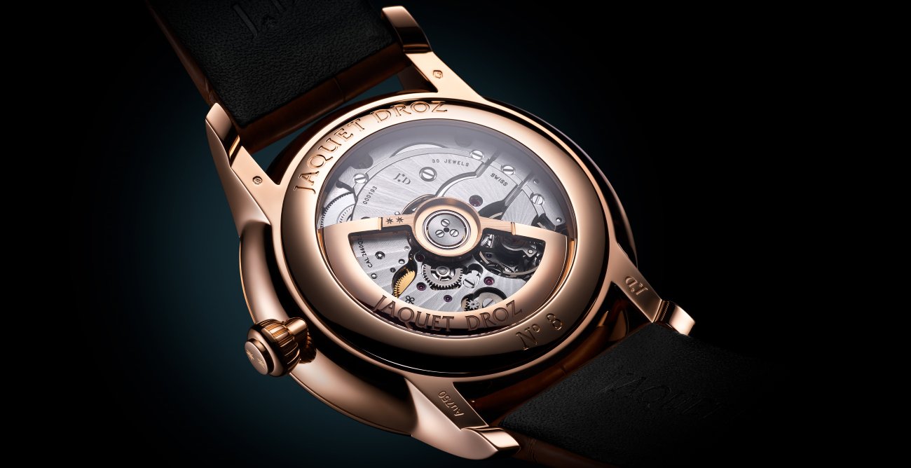 They include an openworked oscillating weight for optimal rewinding and an unobstructed view of the hand-assembled Jaquet Droz self-winding movement that ensures a nearly three-day power reserve (68 hours). Like almost all of Jaquet Droz’s modern-day creations, a silicon balance spring is used to control the isochronism and make the timepiece resistant to temperature changes, magnetic fields and shock.