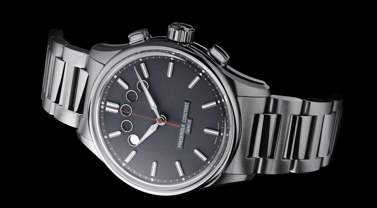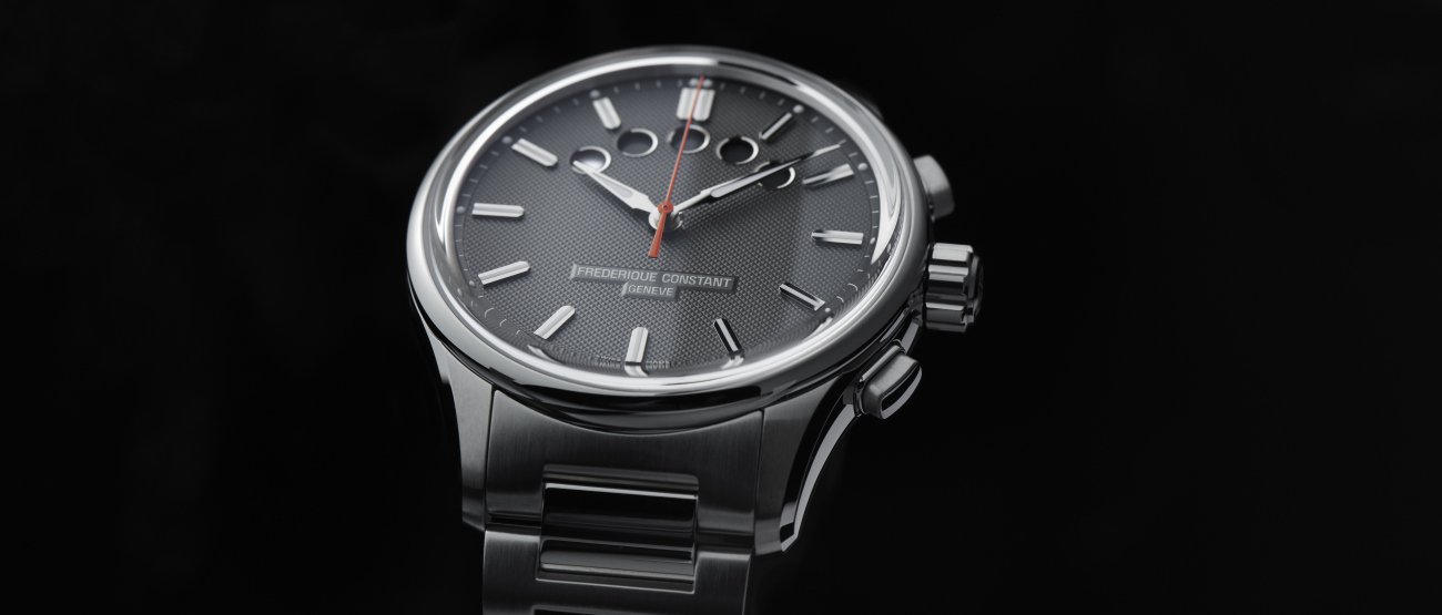 Within the case is the automatic FC-380 calibre. Beating at a frequency of 28,800 vph, it has a power reserve of 48 hours and is guaranteed water-resistant to 10 ATM (100 metres).