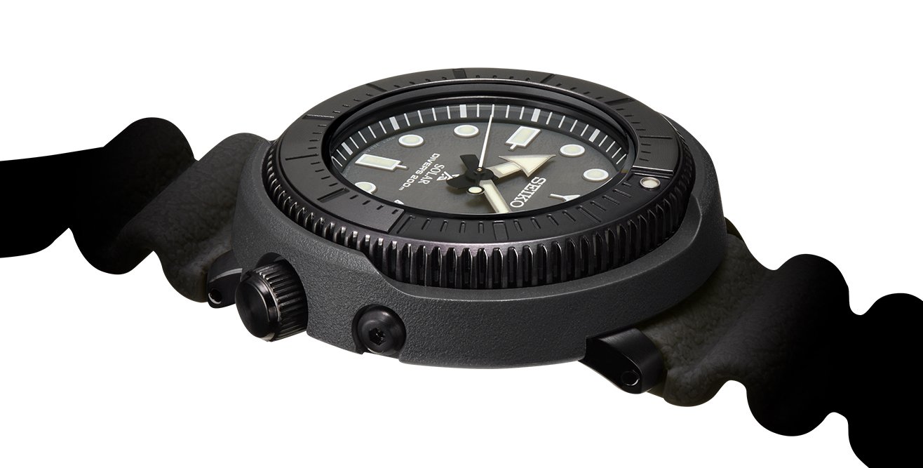 The new series echoes the design of one of Seiko’s innovative professional diver’s watches, the world’s first diver’s watch with a titanium case, but it’s executed in a modern style, with a reinforced case, lightweight yet robust, to be perfectly matched with daily or town use. Using reinforced silicon bands that can withstand harsh operating environments, they are tailored in three colors.