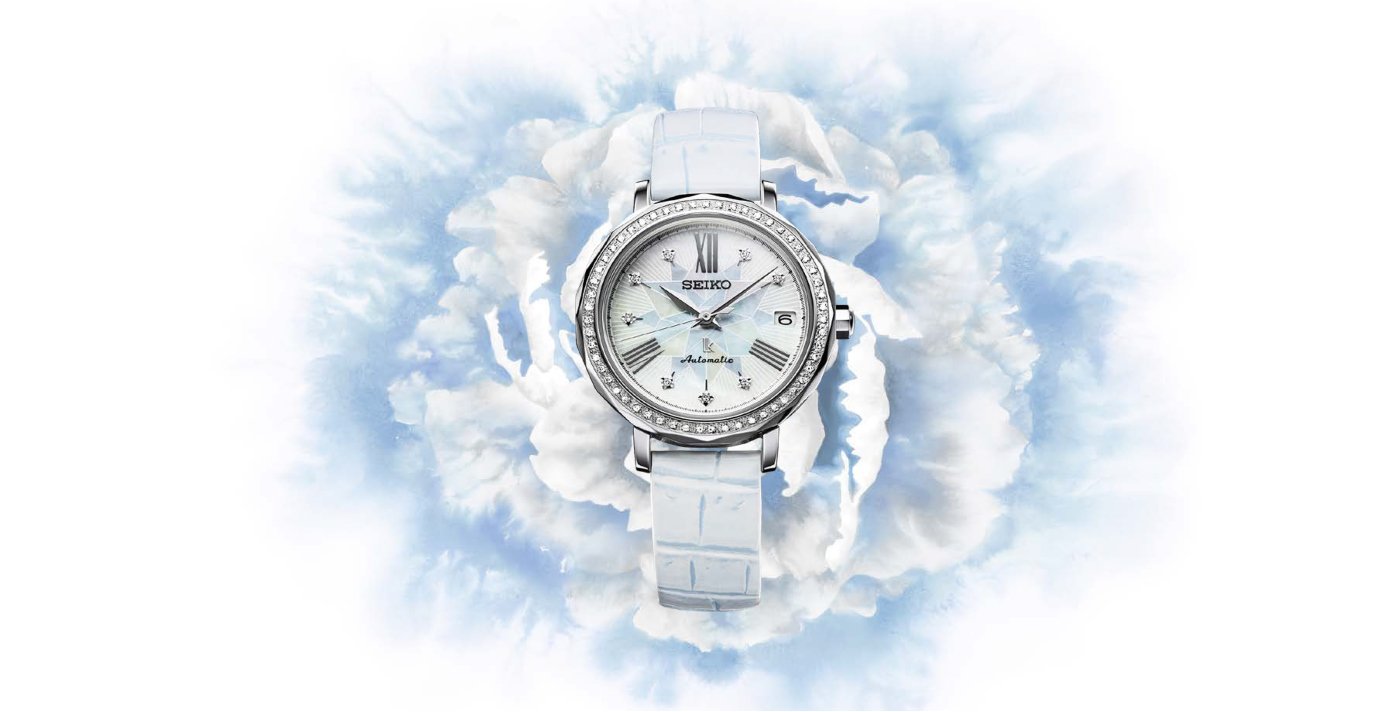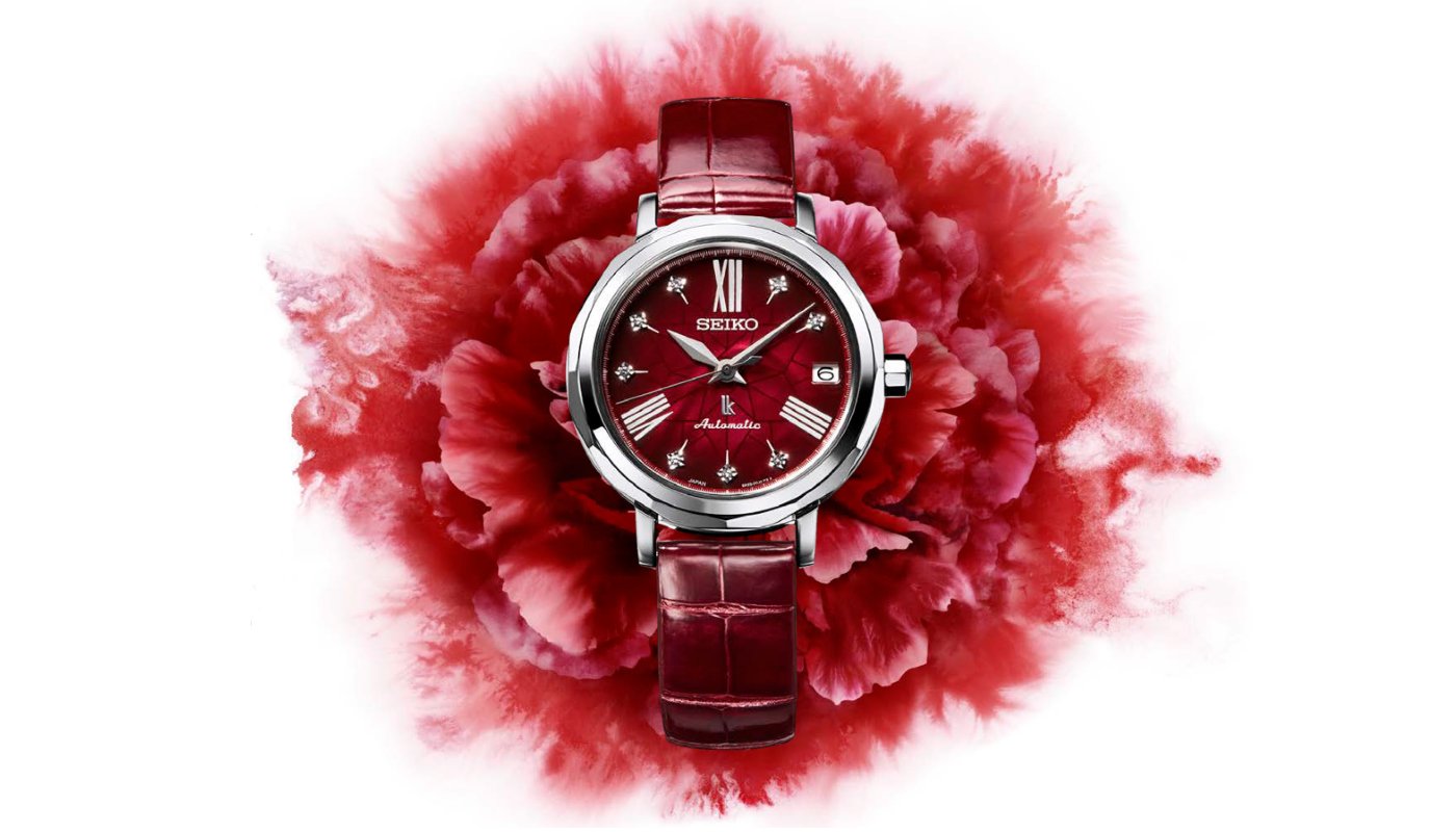 The new Seiko Lukia collection celebrates the glamour, vivacity and refinement of today’s Ginza. Since 1995, Lukia has been adorning the wrists of women in Japan and it is now, for the first time, available outside of Asia. The collection comprises six creations, each of which has a dial featuring a traditional Japanese color overlaid on a mother-of-pearl base with a flower motif and eight diamond hour markers.