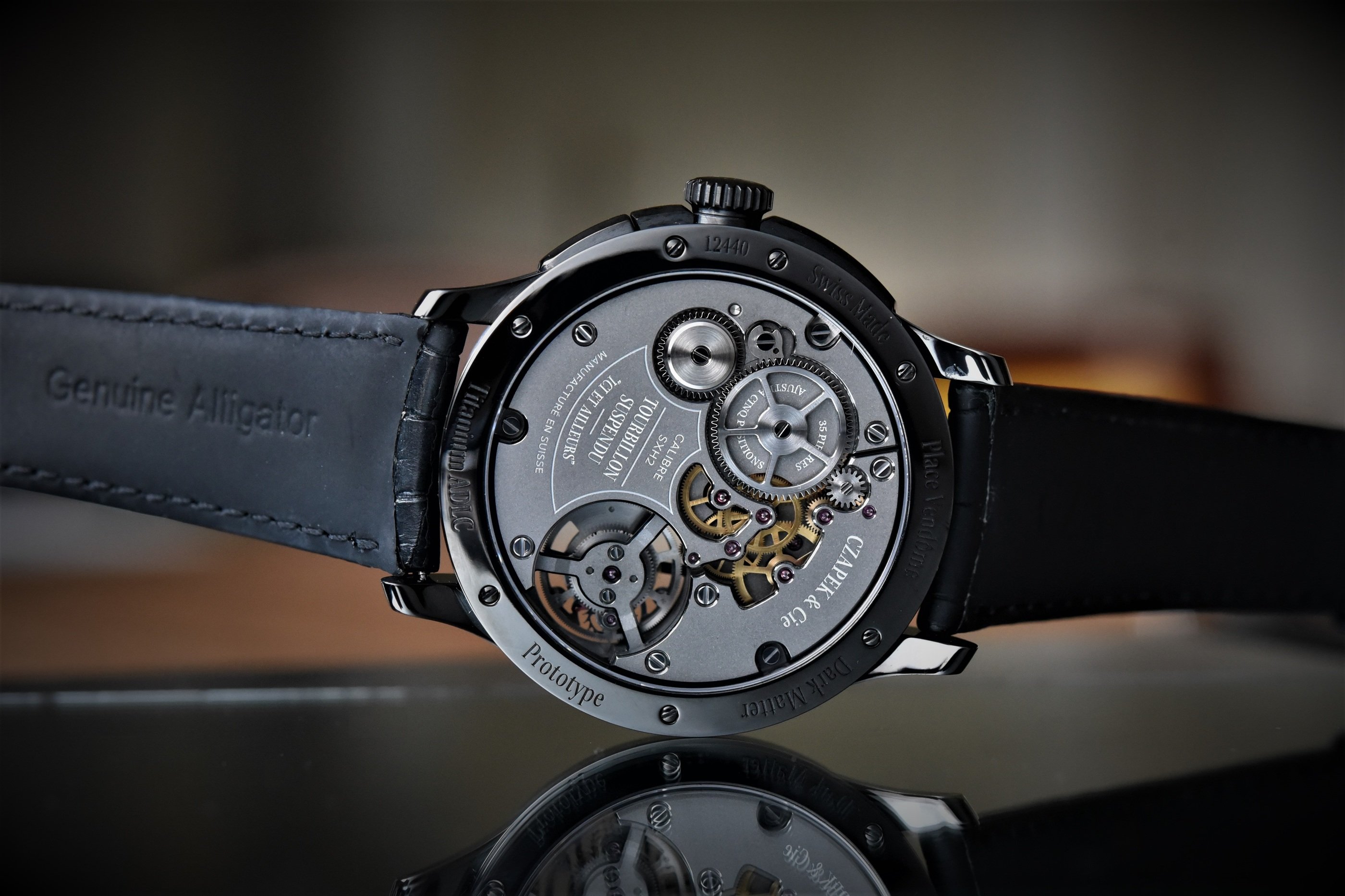 The newly born timepiece is not only inspired by the Ombres tourbillon in titanium, but takes elements from other watches in the Czapek portfolio. The 43.5mm case, in 5-grade titanium, features a black ADLC coating as the Faubourg de Cracovie ‘Courage every second’ chronograph - the unique piece donated by Czapek to the Only Watch charity event and auctioned off by Christies for 110’000 CHF on November 9th 2019.