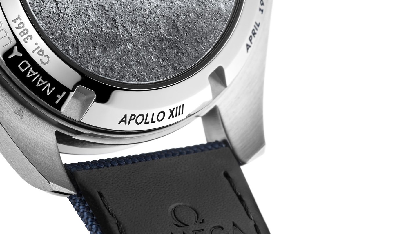 The NAIAD LOCK keeps all caseback engravings in the correct, upright position, including the date in 1970 that Omega received the Silver Snoopy Award, as well as a tribute to the imperilled Apollo 13 mission that same year.