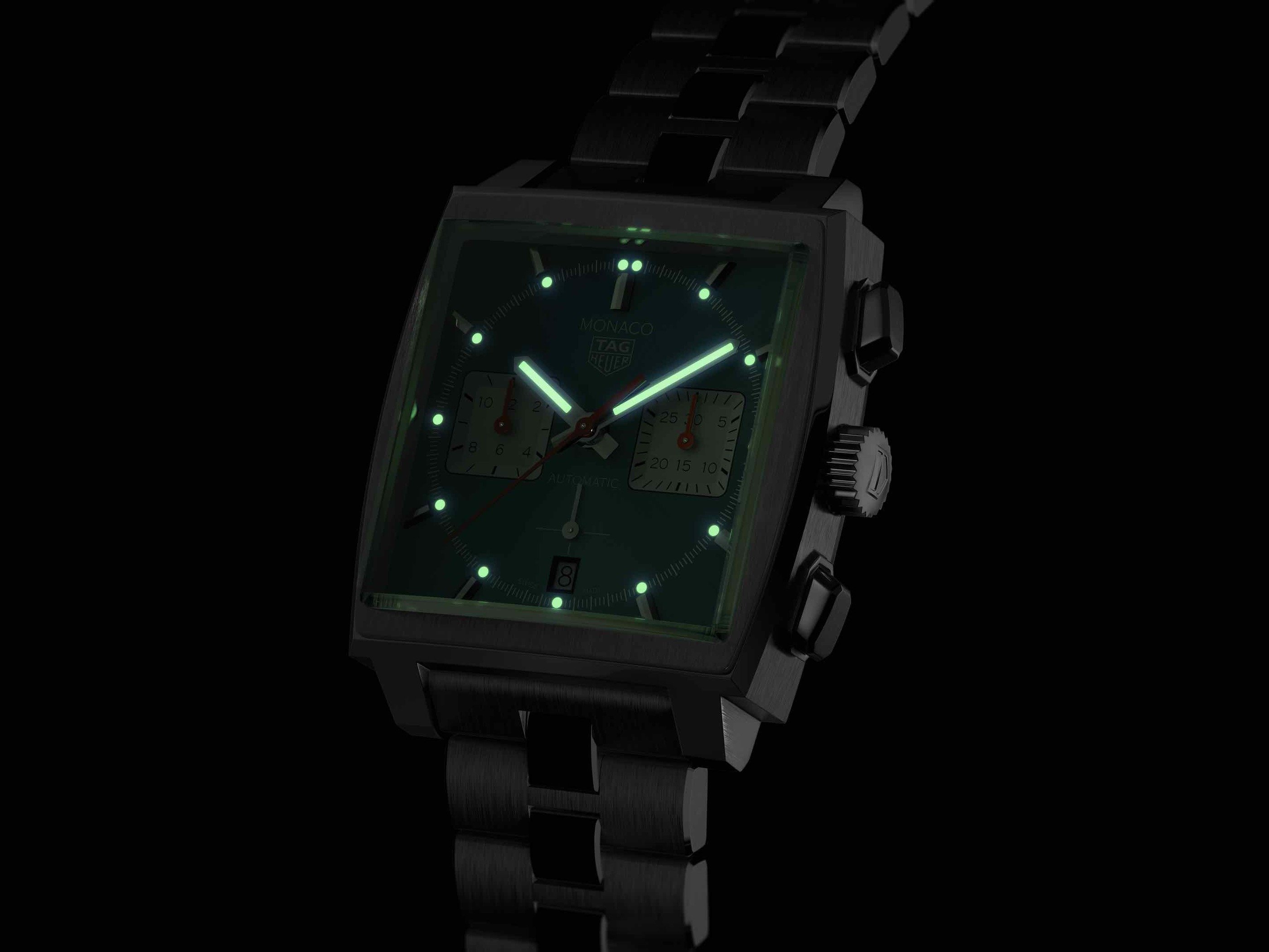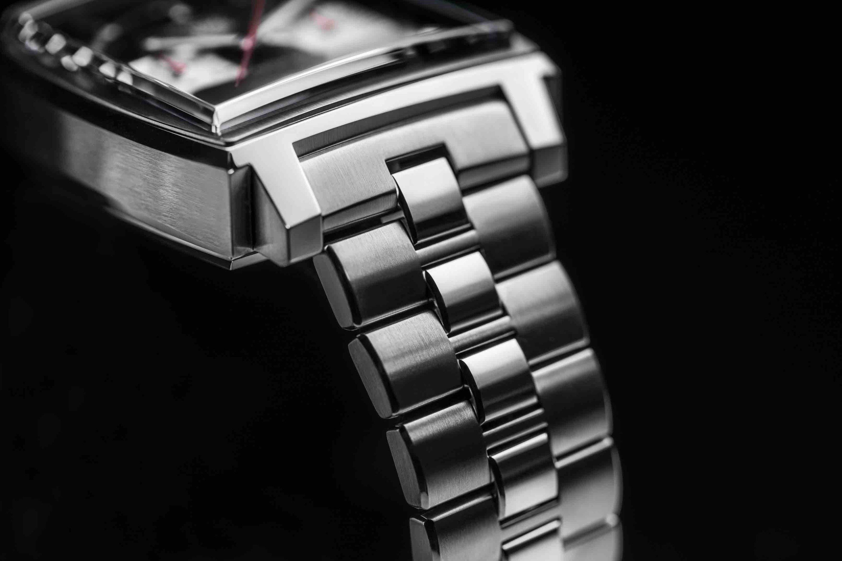 A design feature that might stand out as being unique to these Monaco novelties is the stainless-steel bracelet. It has been nearly two decades since a new Monaco was presented on a metal bracelet. This particular example draws on the H-shaped bracelet that was used for Monaco watches in the early 1970s.