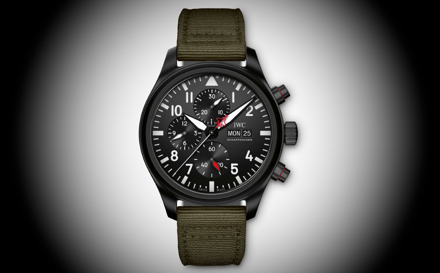 n 2018, IWC created the Pilot’s Watch Chronograph Edition “Strike Fighter Tactics Instructor” in collaboration with instructors based on Naval Air Station Leemore in California. Featuring a case made of black ceramic and the iconic Top Gun patch on the dial, the rugged chronograph is available exclusively for graduates of the Navy Fighter Weapons School.