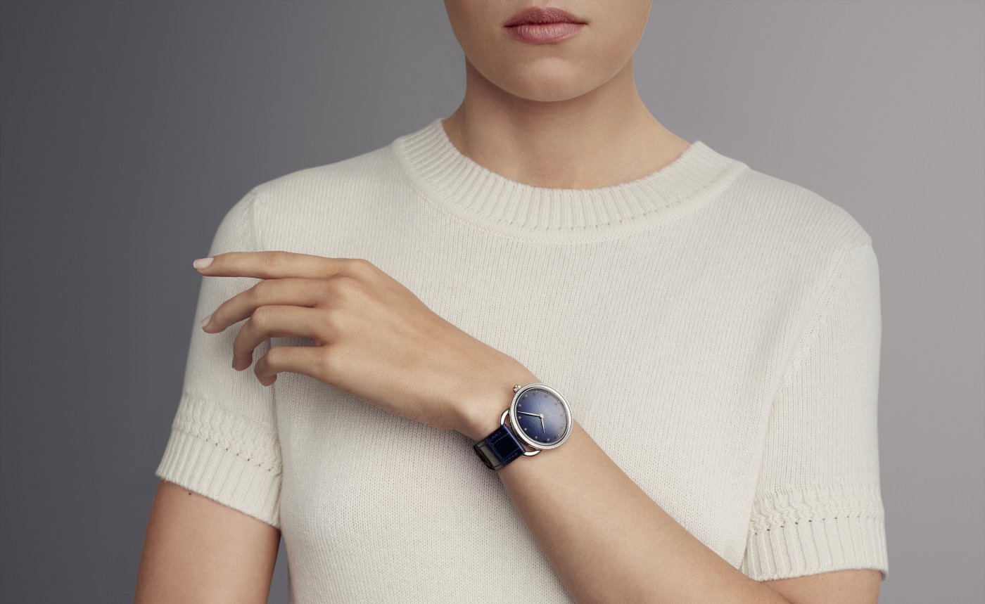 reated by Henri d’Origny in 1978, the round Arceau watch with its stirrupinspired lugs lends its singular aesthetic to a new stylistic expression.