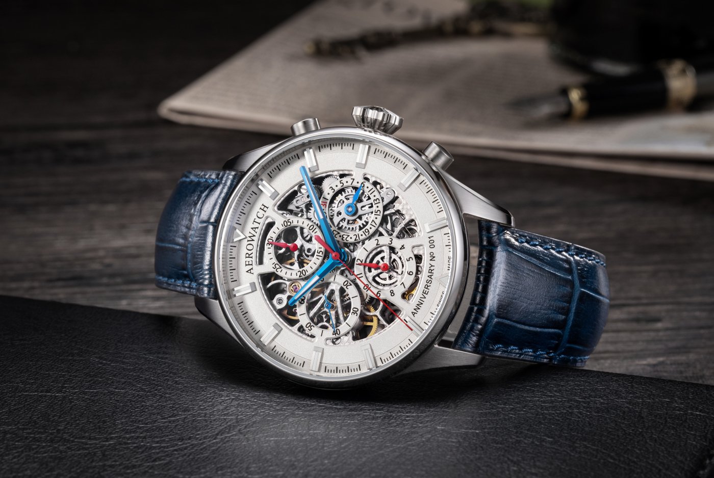 The anniversary chronograph “Les Grandes Classiques – Edition Anniversaire” is available exclusively through Aerowatch points of sale.
