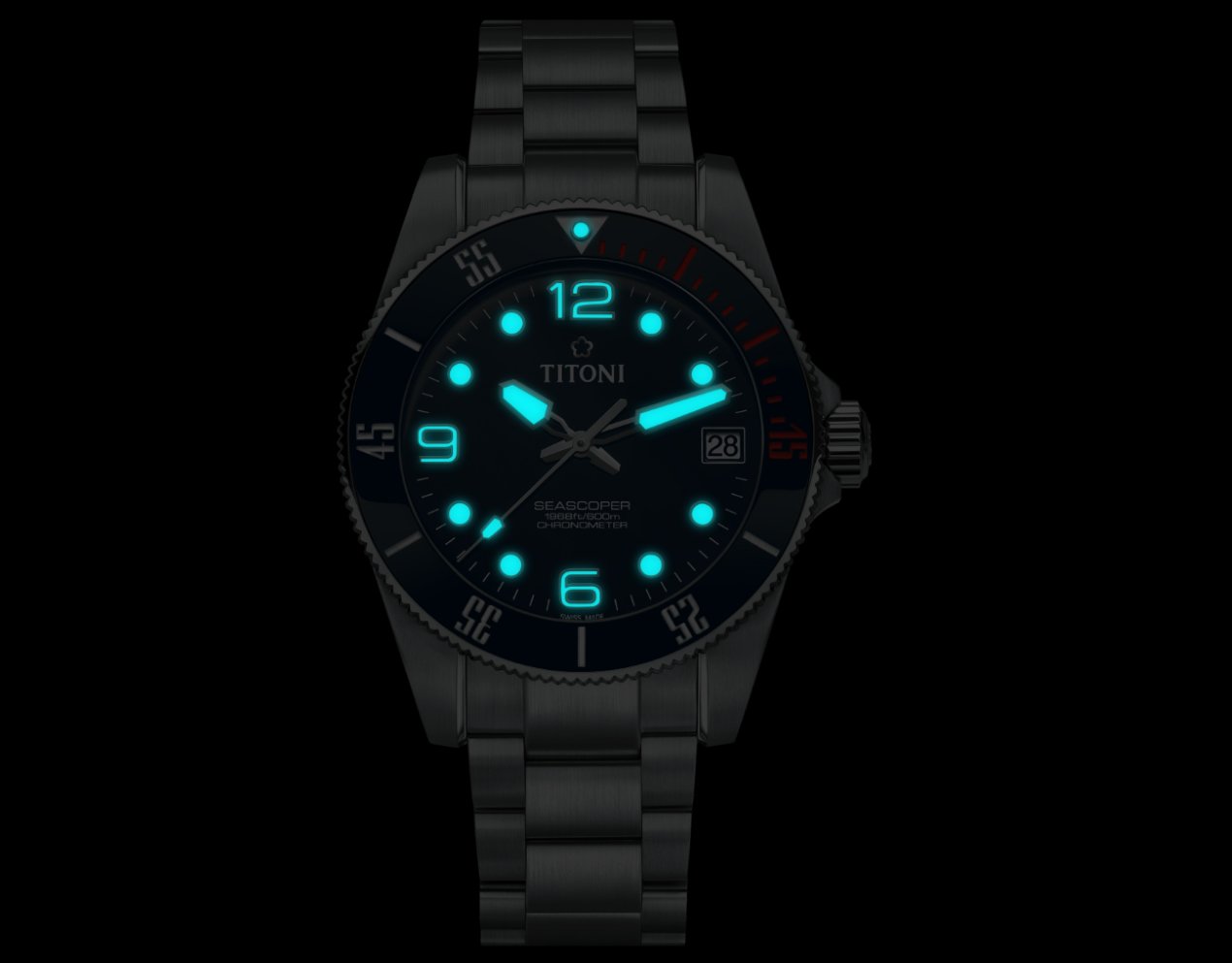 The latest model, the Seascoper 600, is a COSC-certified chronometer that marks a historic turning point: fitted with Titoni’s very own T10 manufacture movement, it is guaranteed waterproof to a depth of 600 metres. The watch has been developed specifically for professional divers and sets new standards in this field.