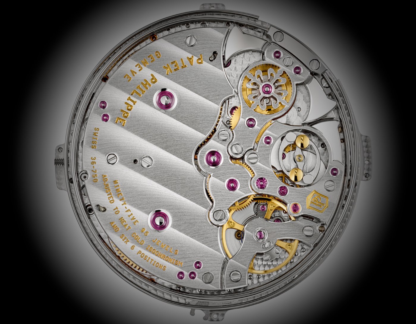 To implement the grande sonnerie as envisioned, Patek Philippe developed a new movement as a spin-off of the caliber 300 of the Grandmaster Chime. Given its 703 parts, the caliber GS 36-750 PS IRM is remarkably compact for such a complex mechanism (diameter: 37 mm; height: 7.5 mm).