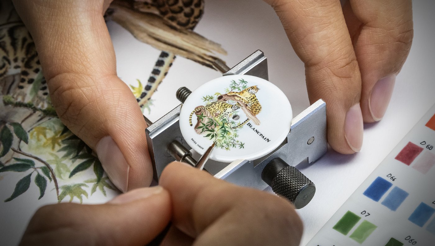 Blancpain had a wish to represent this emblematic feline by drawing on its expertise in the realm of hand decoration. Like the Formosa clouded leopard, the artistic techniques practiced by Blancpain are rare in watchmaking. Some, such as miniature enamel painting, are only offered by a handful of watch companies worldwide. Others, such as shakudō, are produced exclusively by the Manufacture.