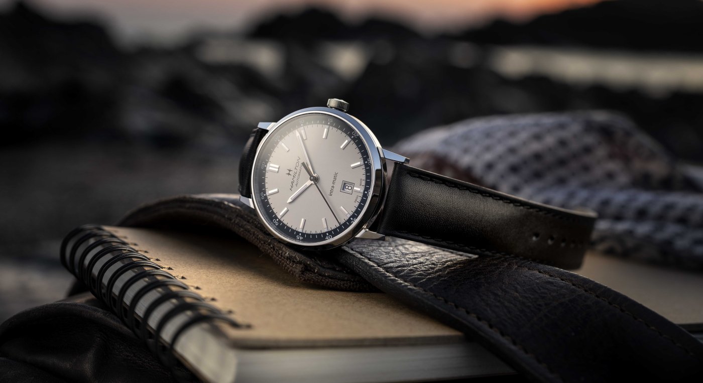 Hamilton extends the Automatic Chronograph’s design to a non-chronograph wristwatch. The new Intra-Matic Automatic 40mm is a sophisticated three-hand automatic with a date window at 6 o’clock.