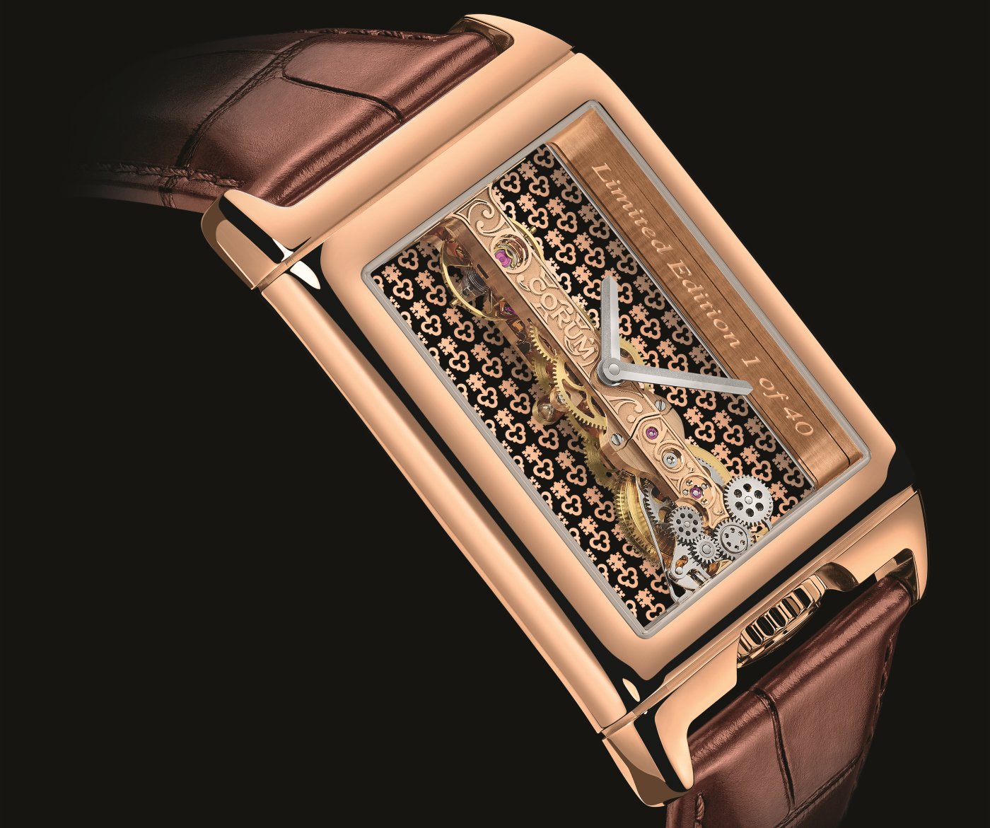“We were inspired by the Art Deco period,” explained Boon Chong Soon (Corum Marketing and Sales Director), “which formed the basis for some of the first pieces designed by Mr. Bannwart. In including our iconic emblem of the Corum Key on the sapphire case back for the Rose Gold version, and hand-engraving on the entire case of the White Gold, these are not only for the anniversaries of Corum and the Golden Bridge but also a tribute to the artisanal history of watchmaking in La Chaux-de-Fonds.”