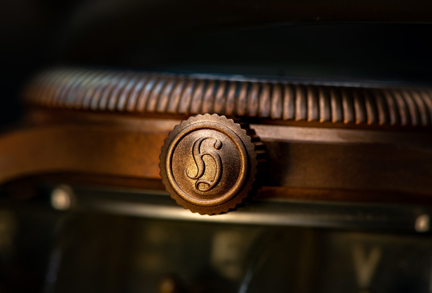 In contrast to the series model of the Pioneer One, the limited bronze watch does not have a date display. In addition, the historical logo, which is rarely seen, is used on the plain dial. The large crown, also featuring the “h” of the historic Hanhart logo, is used for error-free control and the numerals and hands of the Pioneer One Bronze are covered with the modern Super LumiNova® luminous material C3 green line for perfect readability by day and night.
