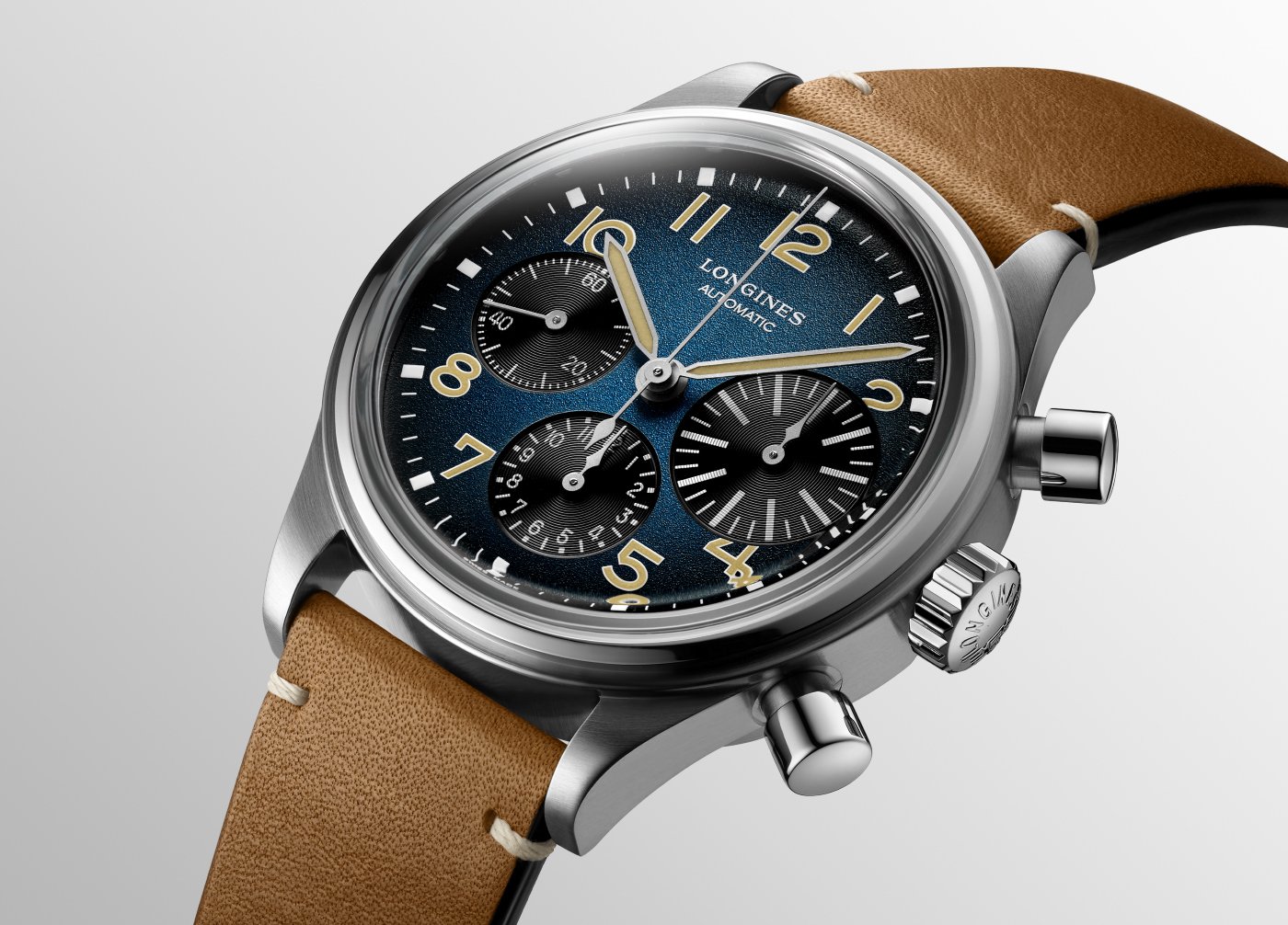 The Longines Avigation BigEye has a 41-mm titanium case which encloses a column-wheel chronograph movement (L688) with a silicon balance-spring for accuracy and enhanced resistance to magnetic fields. To prove its reliability, this new version comes with a 5-year warranty.
