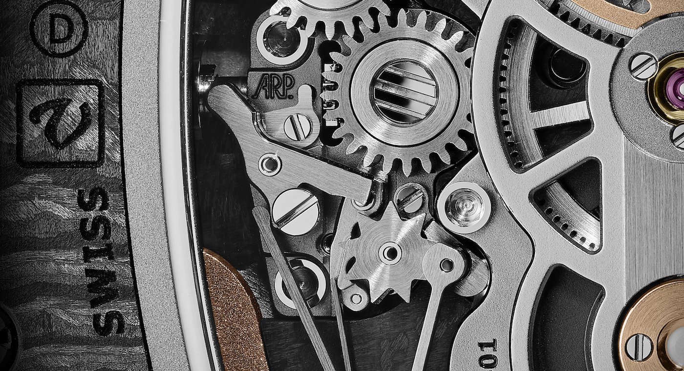 Optimal resistance to high-temperature oxidation makes this material - which can nonetheless be moulded and assembled by conventional methods - an especially suitable choice for combustion chambers. Consequently, the RM 21-01’s baseplate offers unsurpassed stiffness, an extre-mely low thermal expansion coefficient and exceptional torque resistance, all essential prerequisites for a Richard Mille watch.