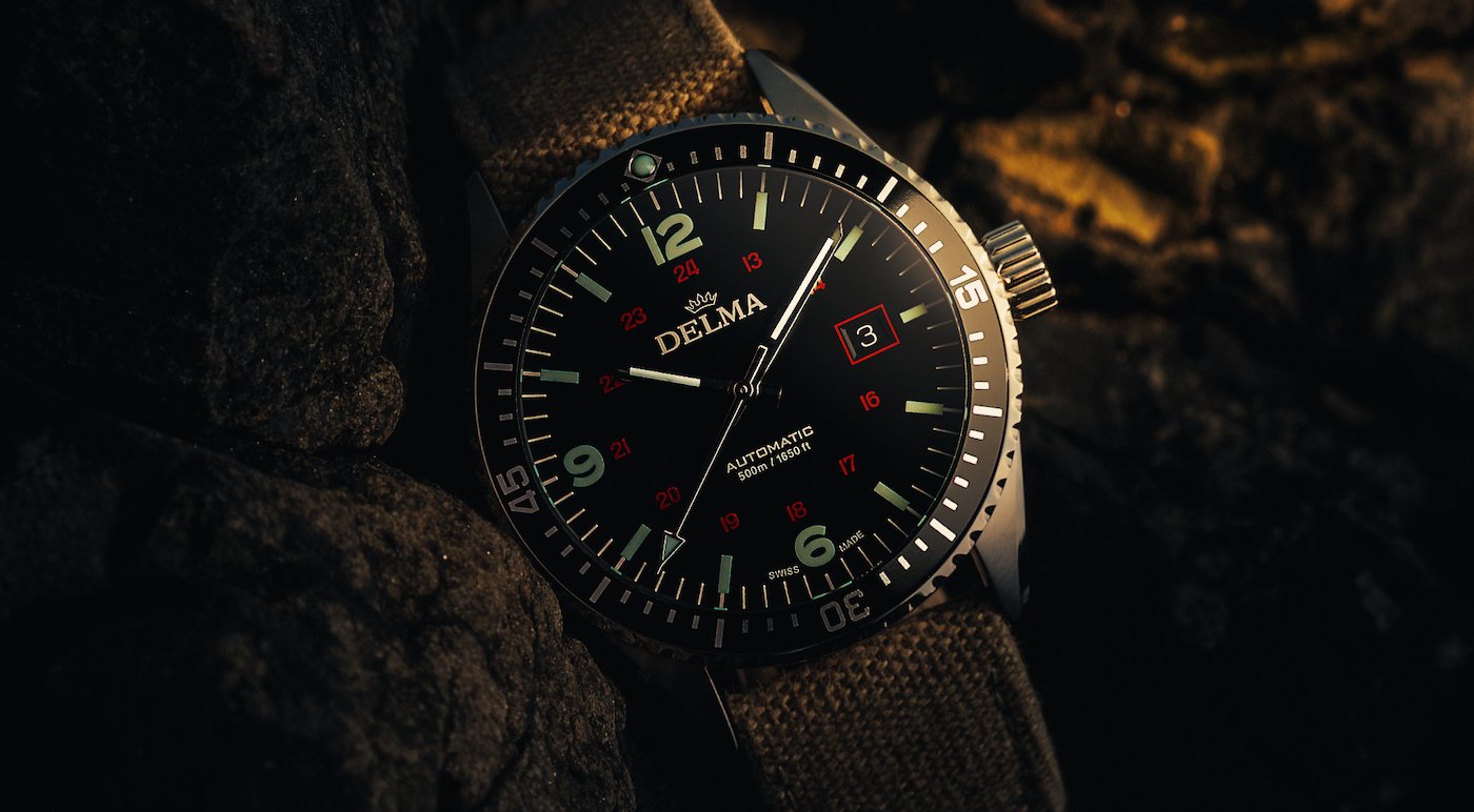 uilding upon a strong collection of divers’ and sailing watches, Delma introduces a new sports watch with features to perform in all environments, the Cayman Field. Originating in the early 20th century and known as “trench watches” for their intended use in battle, the durable, simple design and bold numerals of the field watches are also practical for today’s outdoorsmen and adventurers.