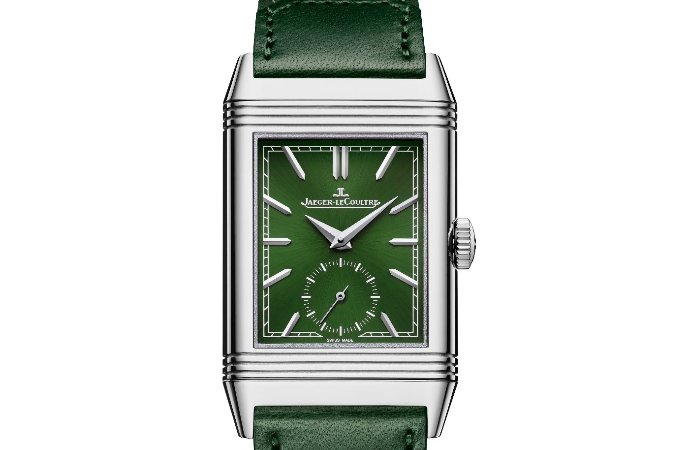 For 2021, recalling the early use of colour that distinguished the Reverso, La Grande Maison presents the Reverso Tribute Small Seconds in Green. The rich tone of the sunray-brushed lacquer dial and matching leather strap is reminiscent of the deep green of the pine forests that surround Jaeger-LeCoultre’s home in the Vallée de Joux.