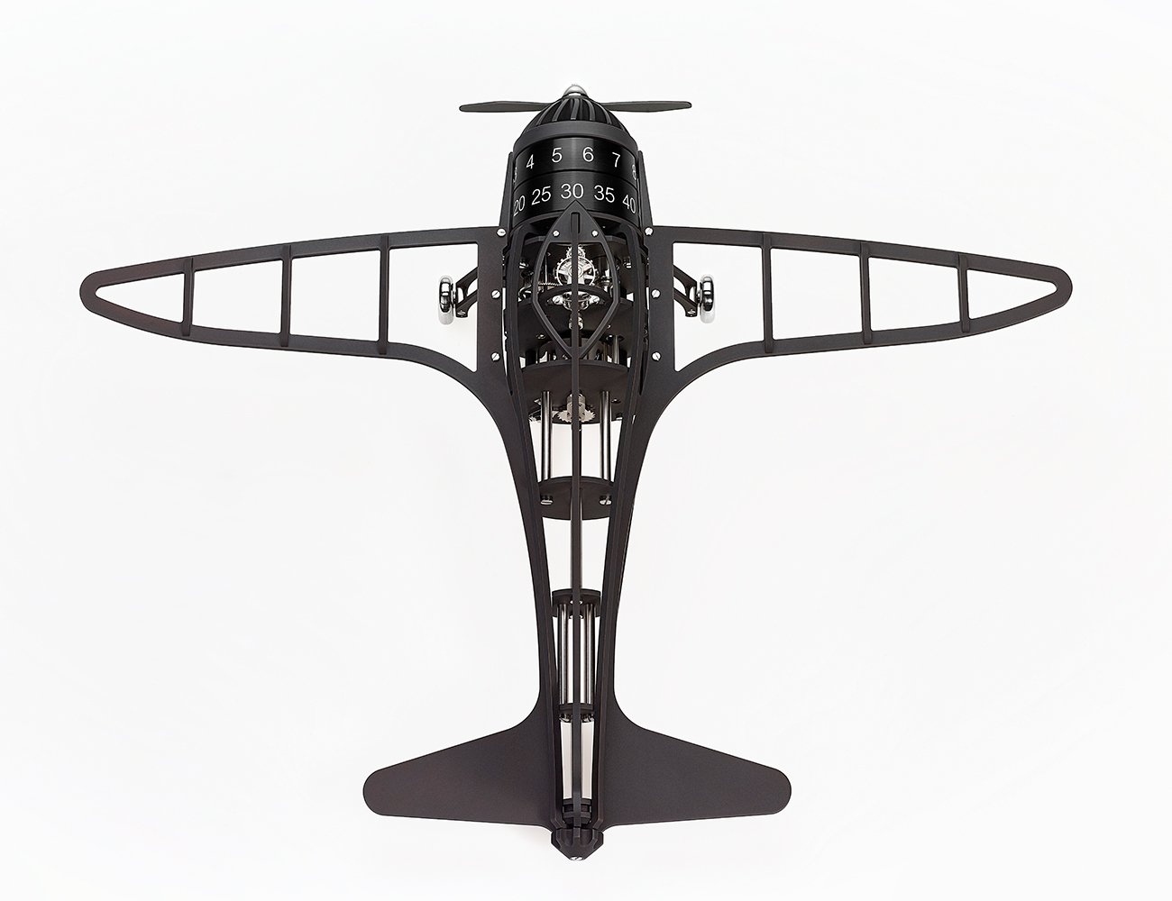 Some things fire up imagination and fantasy more than others. Some adventures only the elite, can enjoy, but the boundless expanse of the imaginary world is accessible to everyone. Time Flies is an 8-day clock in the form of a stylized 1930s plane, offering just enough structure to provide form, and just enough empty space to inspire our imaginations.