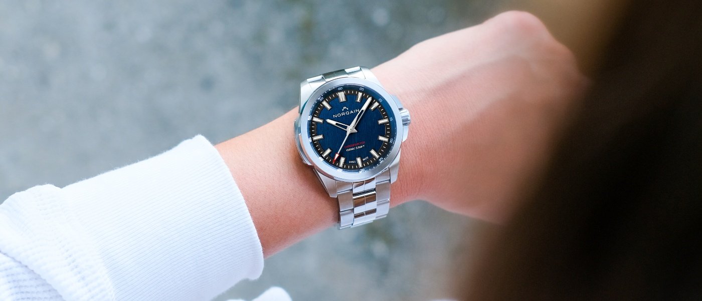 The calibre NN20/1 has been issued COSC certification. Its sturdy construction features a traversing bridge with two-point fixation that ensures the timekeeping performance will not be hindered by powerful activity. When the customer registers to join the Norqainer Club within one month after their purchase, they will receive an additional year of warranty for a total of five years.