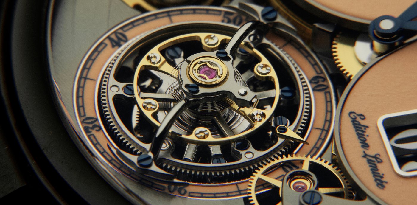 Finally, the power reserve of over ten days, provided by a single barrel, would require meticulous winding if not for the spherical differential winding system. The application of this ingenious mechanism and the multi-gear three-dimensional teeth of one of its pinions, have received two patents. Because of this differential winding system, the number of crown turns needed for full winding of the spring is halved without increasing friction and forces exerted on the gears.
