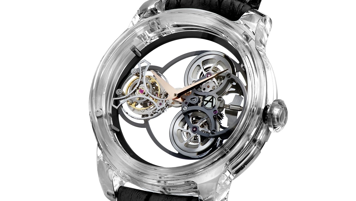 Fully transparent, the sapphire crystal case has nothing to hide and plenty to show. This quest for transparency takes to the extremes the skeletonizing of the movement and enhances the astonishing beauty of its intricate spirit. Each part of the movement is delicately bevelled and polished by hand.