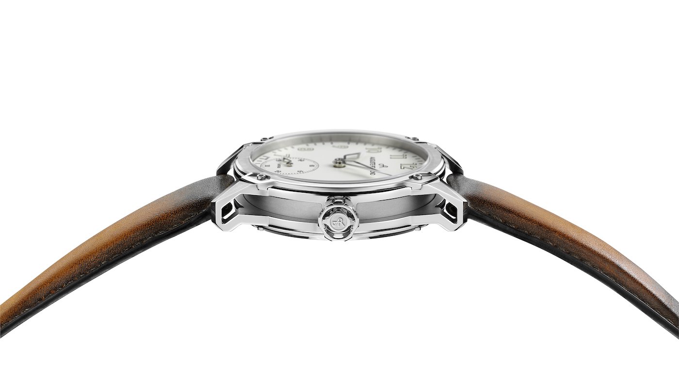 Available in two versions – with a black dial and with a white dial – this sleek model, with a small seconds indication at six o’clock, embodies Auguste Reymond’s stylistic and trend-bucking modernity. The Arabic numerals and the railtrack minute-circle make for appreciable reading comfort, further enhanced by the drawn out silhouettes of the hours and minutes hands.