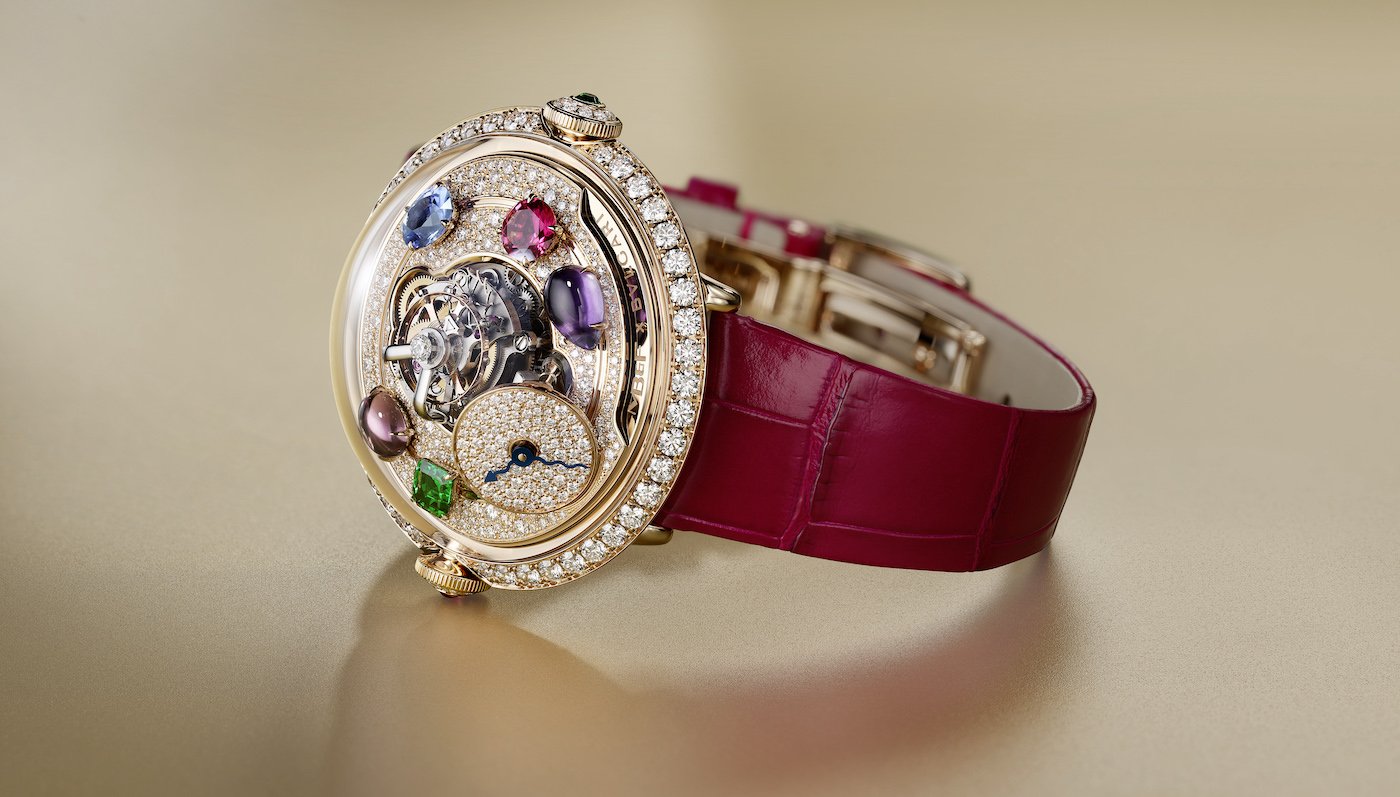 For each of the 20 timepieces composing the two pink or white limited editions, jewellers have carefully selected tourmaline, tsavorite, diamonds, rubellite, amethyst, tanzanite and topaz, in an exceptional composition forming a full circle around the movement. The dial entirely paved with snow-set diamonds provides a dazzling backdrop.