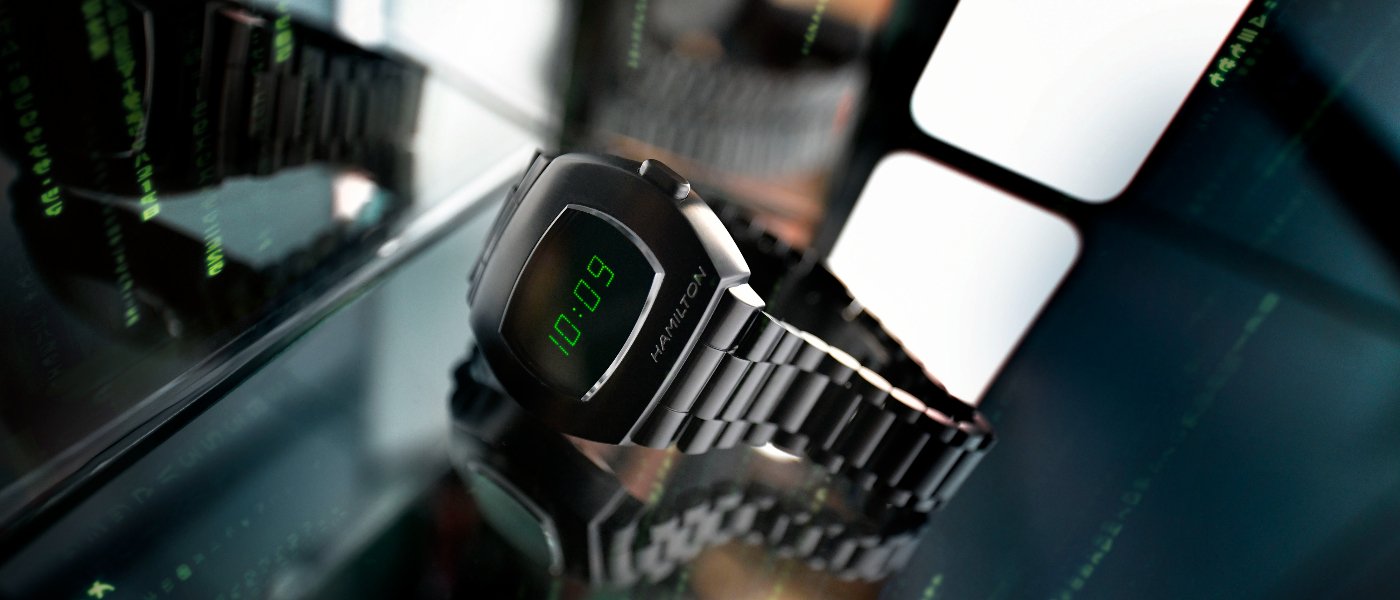 As a nod to innovation in both film and watchmaking, Hamilton has applied the tech wear look of the “Matrix” universe to the similarly retro-futuristic design of another digital icon: the Hamilton PSR MTX.