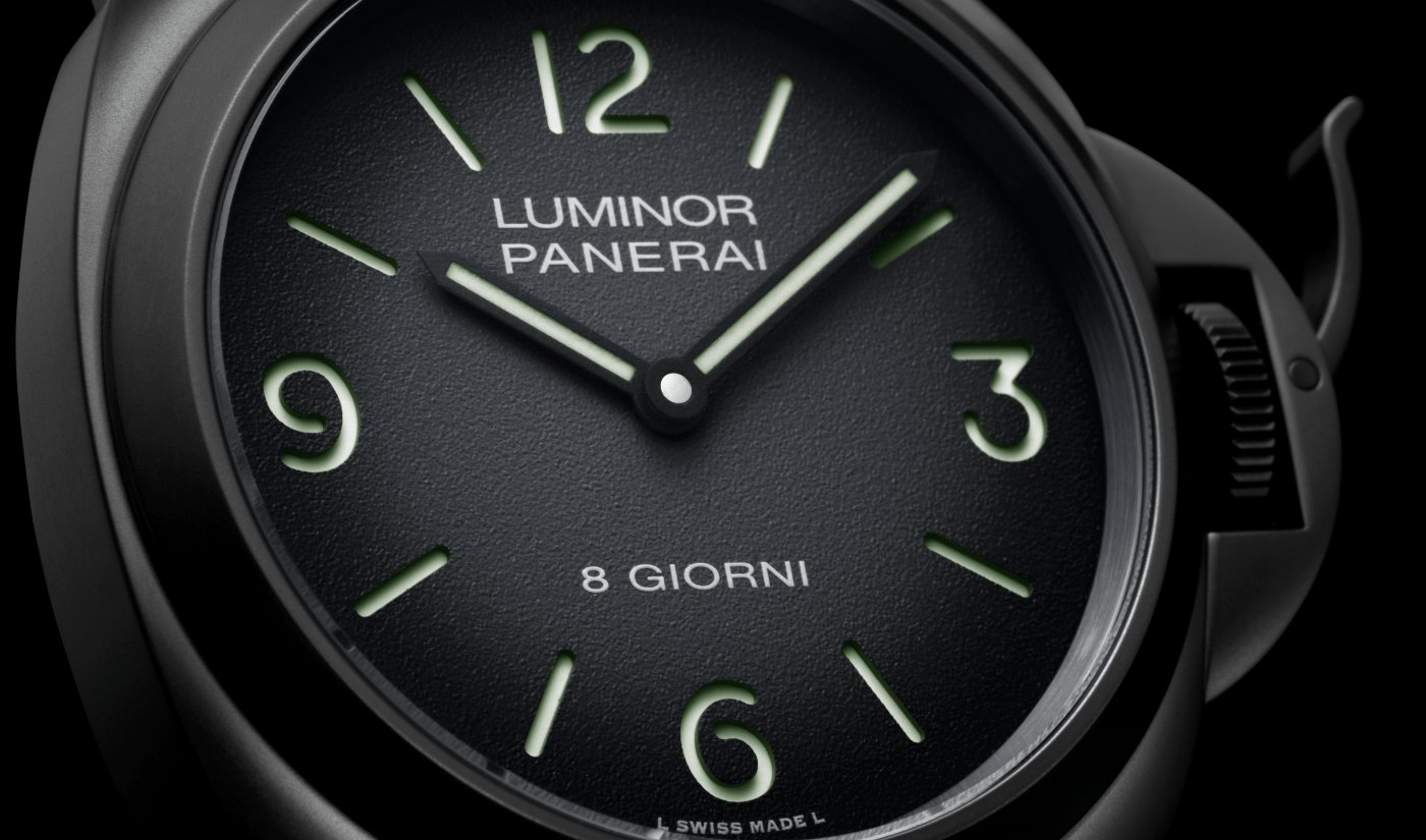 A matte black 44mm case composed of titanium with DLC coating anchors the contemporary watch. And for the first time in the brand’s history, a grainy dial accompanies the P.5000 movement, a manually wound caliber with an eight-day power reserve, a characteristic shared with models Panerai produced in the past for underwater commandos.