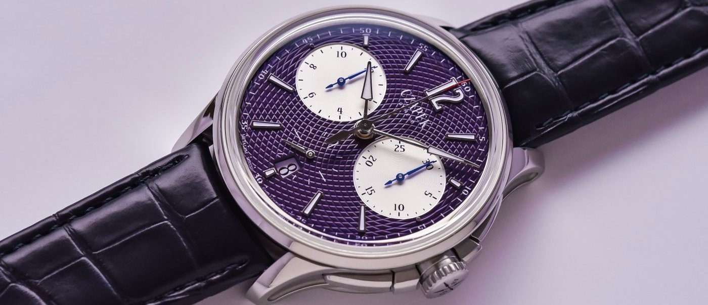 In the case of the Purple Panda, the exclusive registered “Résonance” guilloche pattern has been tinged with a magnificent deep purple color, contrasting with the white of the chronograph’s minute and hour counters. An original and contemporary timepiece, “totally in the air-du-temps,” as Xavier de Roquemaurel, CEO of Czapek & Cie, comments. “Most of our clients associate Czapek with unexpected vivid colors and have invited us to make incursions in directions that are not so common in Haute Horology, as if Czapek also had an Haute Couture dimension. The tone of the Purple Panda was born from these exchanges… and its name from our low-key, humorous culture”.