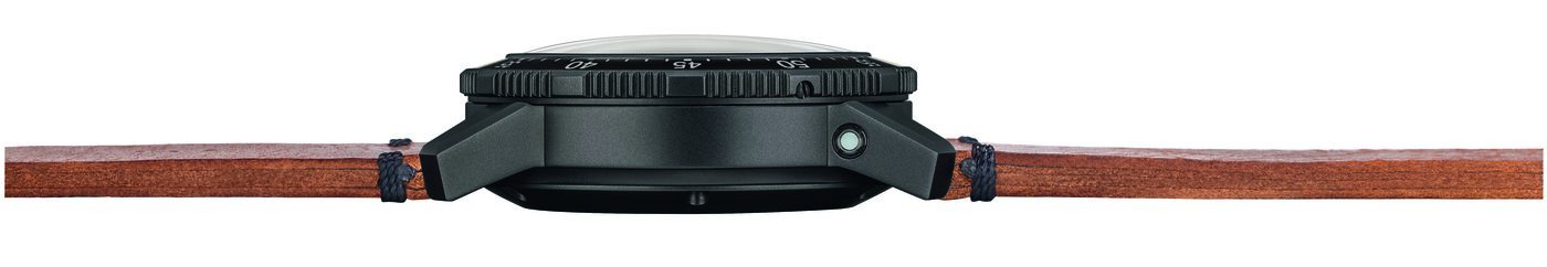 Another useful instrument for recording cumulative time, besides the chronograph function, is the captive countdown pilot’s bezel with minute ratcheting, which can be rotated on both sides. Its captive design makes it virtually impossible for it to become detached from the case. In the interest of readability and timekeeping, all markings on the dial not relevant to the mission are muted in red. The crown and push-piece are also carefully positioned on the left side of the case to prevent pressure on the back of the hand and keep the watch from getting caught, even in time-critical situations.