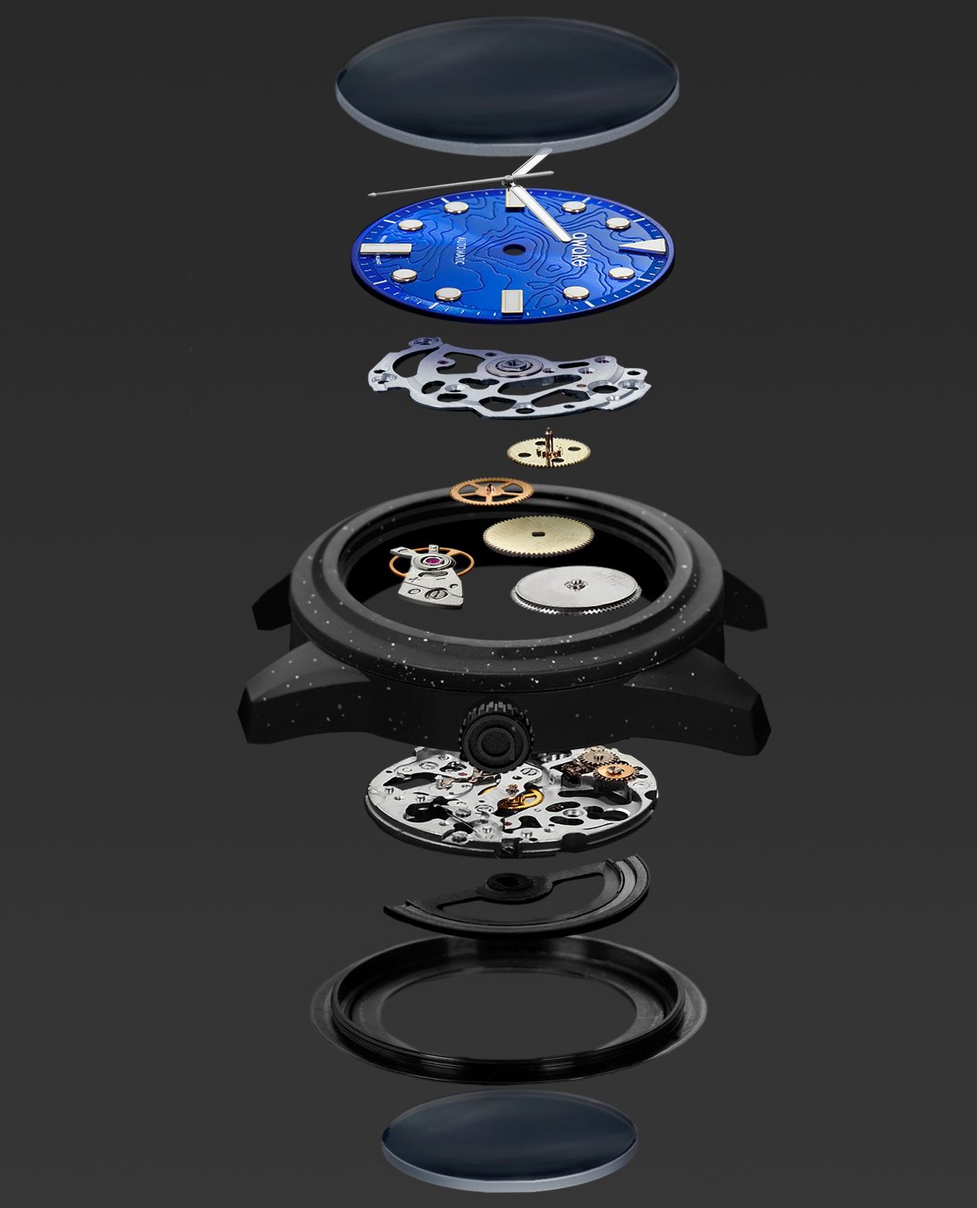 Ocean DNA will be available in two versions: Atomic Blue and Atomic Green. Awake is socially and environmentally committed and assembles all its watches in France, thus reducing its carbon footprint while preserving local craftsmanship and employment. In order to guarantee optimal reliability and precision, each movement is manually adjusted in the atelier and delivered with a test certificate.