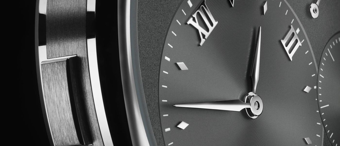 Gently bevelled chamfers assure balanced transitions from the subsidiary dials to the granularly textured main dial. This allows high-contrast highlighting of the hands, the Roman numerals and the lozenge-shaped markers in white or pink gold. The resulting dial is remarkably vivid, exquisitely modelled, and elegant.