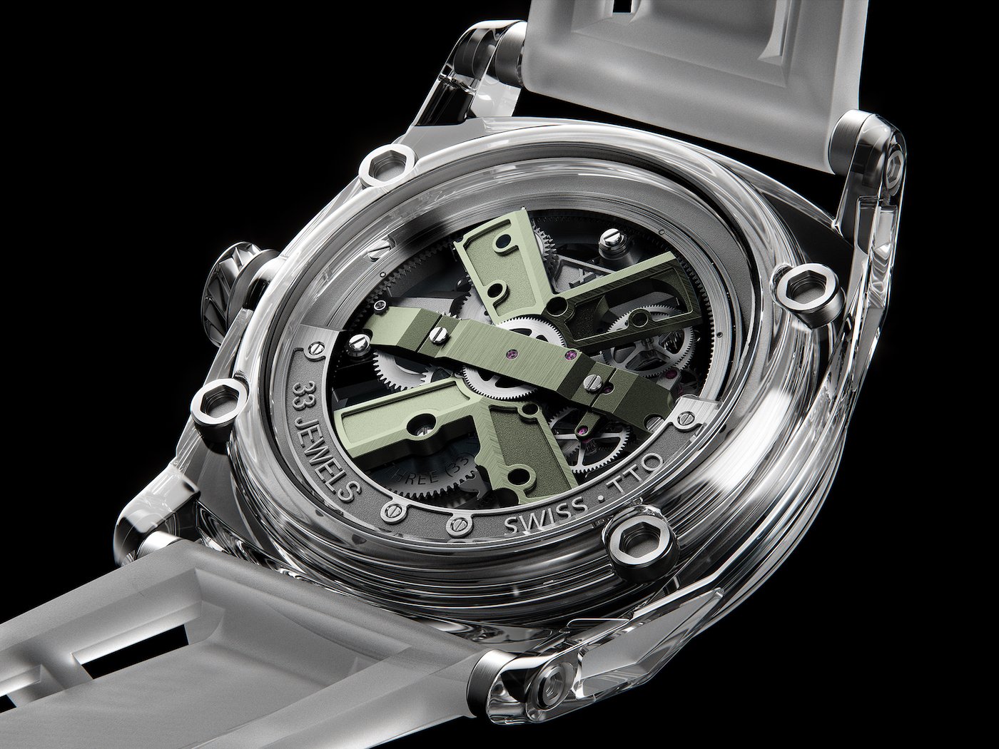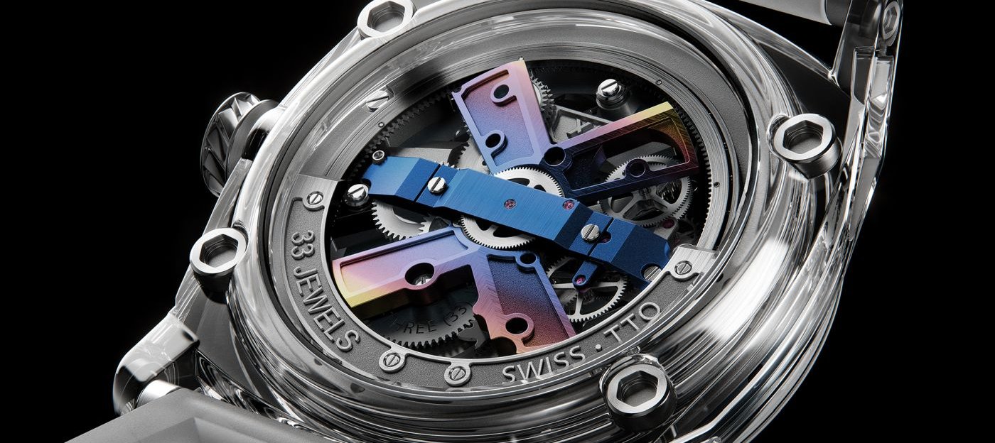 n fine watchmaking, sapphire is an extremely difficult material to work, and one requiring rare expertise. Not a single error can be permitted throughout each stage of its production, from machining to polishing, up to and including its assembly. A challenge worthy of Code41, who’ve taken on the task with vigour with the release of the X41 Edition 6.