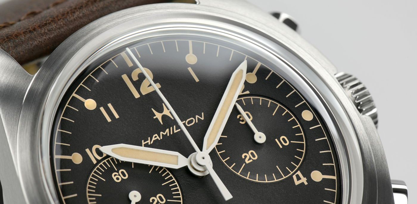 rue to its historic roots with a distinct vintage military aviation design, Hamilton’s Khaki Pilot Pioneer Mechanical Chronograph recalls recognizable details of the chronographs the brand produced for British Royal Air Force (RAF) pilots in the 1970s, making it a must-have for military history enthusiasts, aviation experts and watch collectors. Rugged and reliable, the 40mm watch is powered by the brand’s exclusive hand-wound H-51-Si movement.