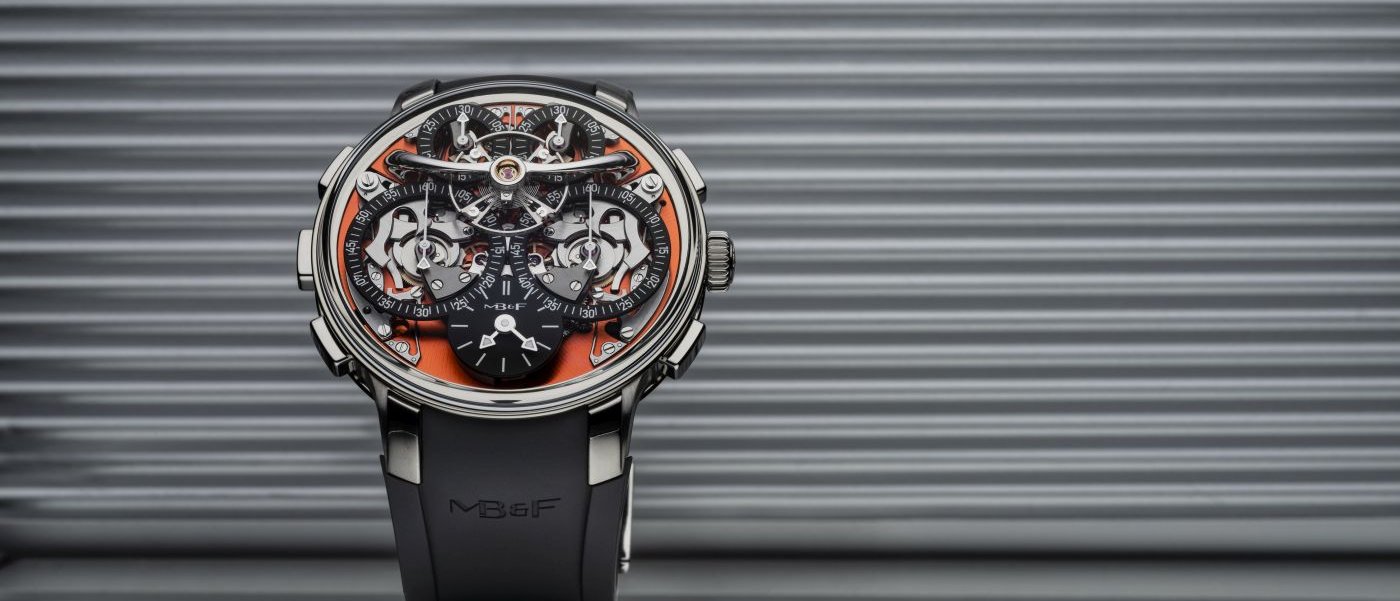 - Fully integrated dual chronograph system developed for MB&F by Stephen McDonnell, featuring Twinverter switch allowing multiple timing modes.