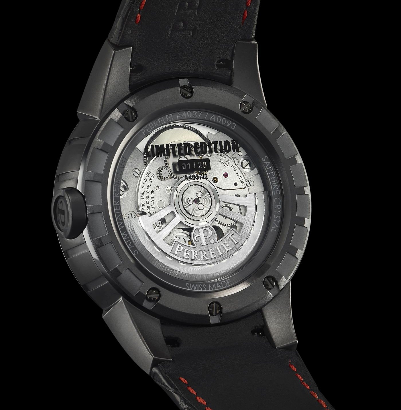 The engine that powers this collection of innovative technology and trendy contemporary design is the Perrelet’s manufacture P-331-MH self-winding calibre. With both Chronofiable and COSC chronometry certifications, it offers excellent performances in timekeeping precision.