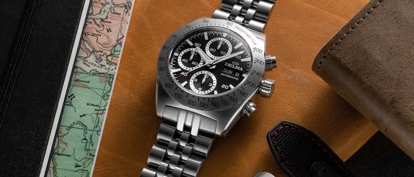 t is a striking evolution of Delma’s original Montego combining the power of its sold-out predecessor with enhanced functionality and a refined disposition. The new automatic chronograph with prominent tachymeter function showcased on a fixed stainless-steel bezel, distinguishes itself as a venerable racing timepiece. Specially appointed to measure speed as a function of time and distance traveled, it is prepared to guide the wearer with precision for adventures near and far.